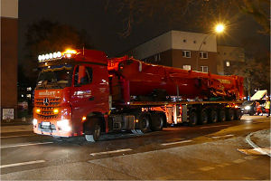 Durch unvorhersehbare Probleme mit der Infrastruktur vor der Baustelle, mußte der Einsatz vorzeitig abgebrochen werden und der Kran wurde
