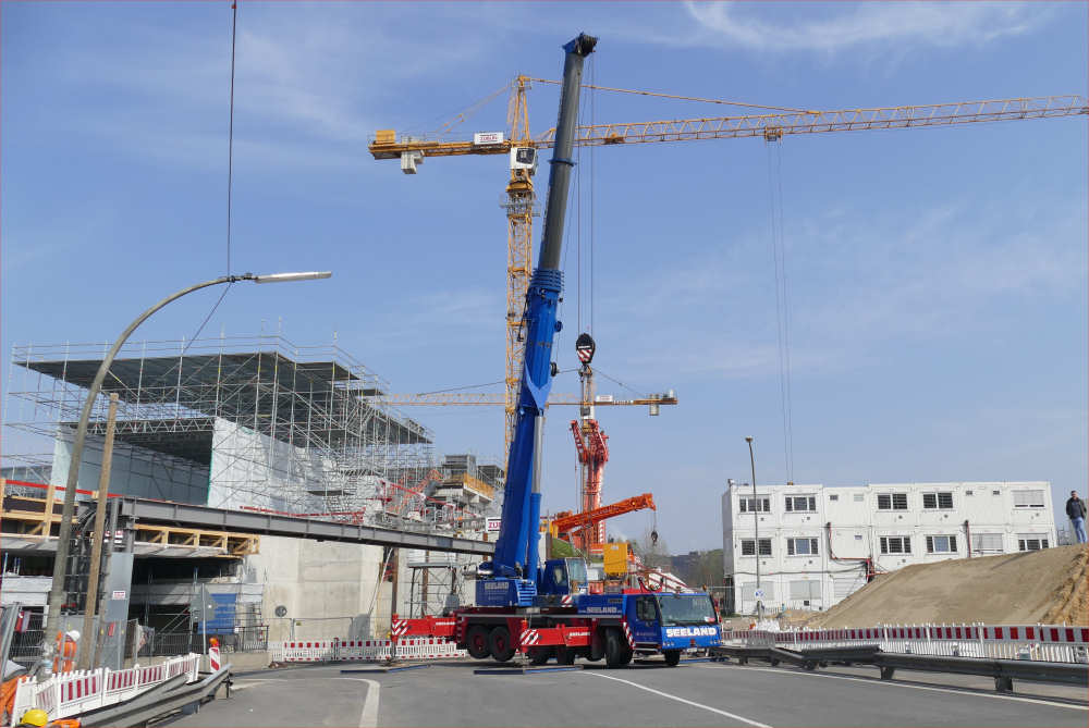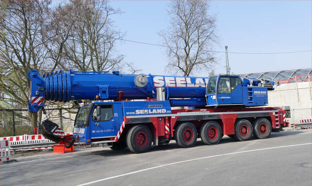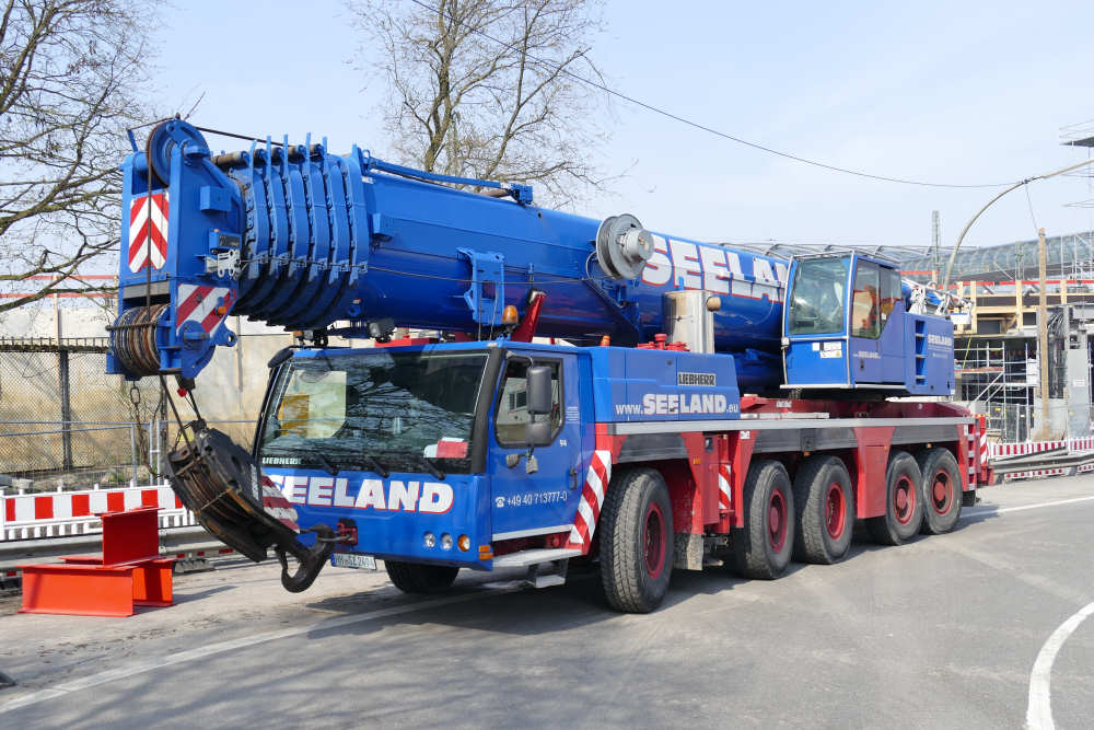 der fünfachsigen 200t Krane. Der Ausleger kann mit einem 7 m Gitterstück zur Teleskopauslegerverlängerung