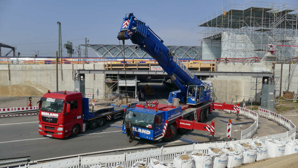 Max. Traglast bei Ausladung: 200 t bei 3 m Radius