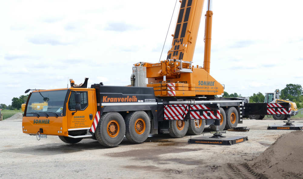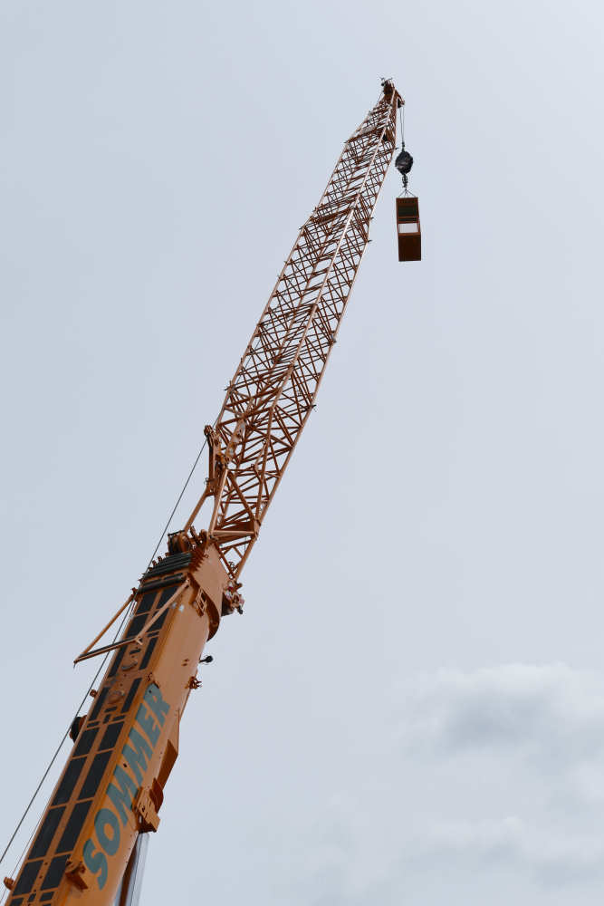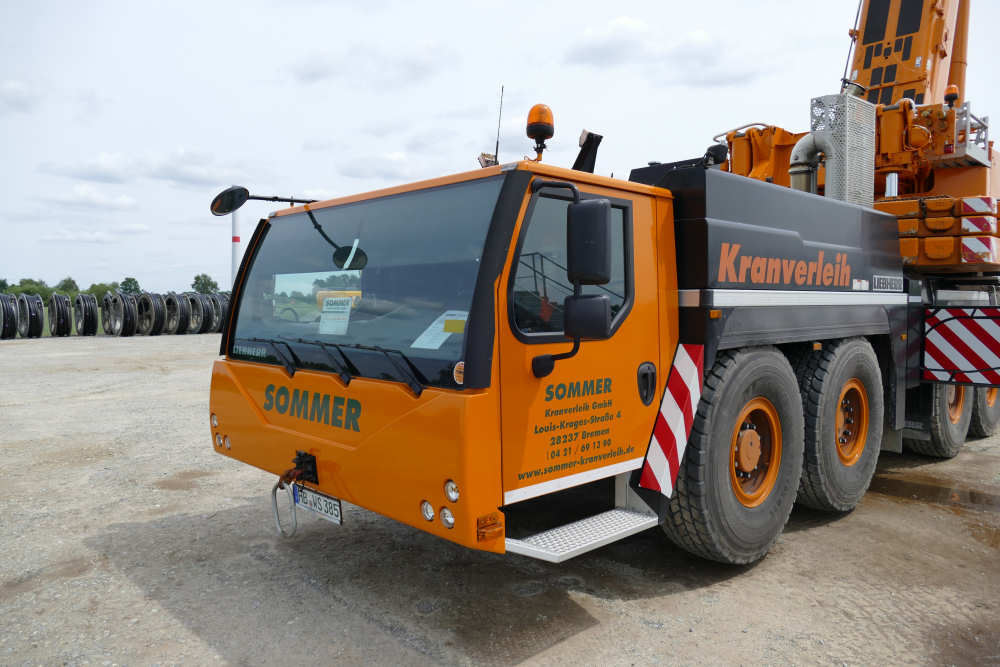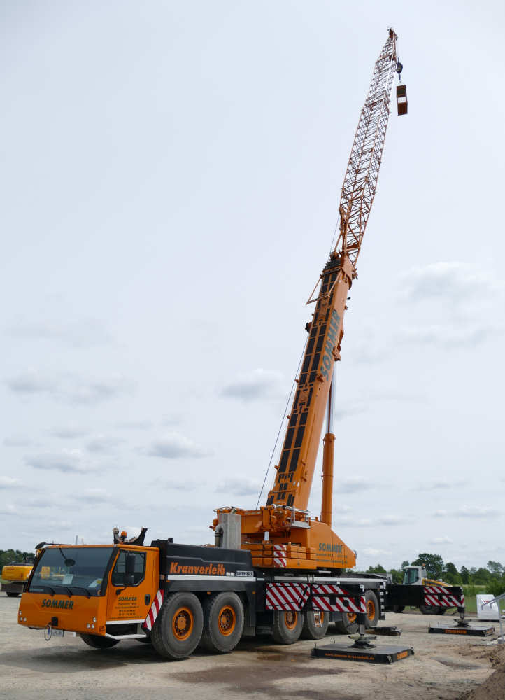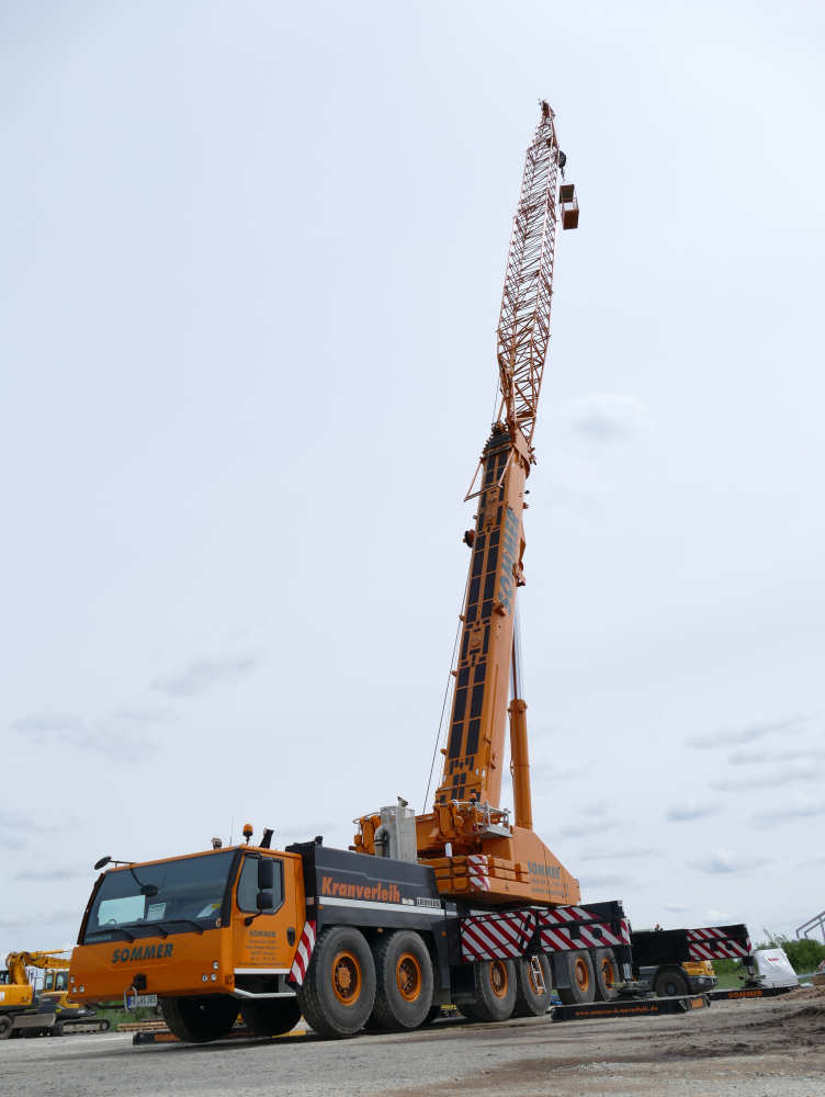 Sommer stellte diesen LTM 1300-6.2 2015 in Dienst. Im Juni 2015 war der Kran mit 31,5 m fester Gitterspitze