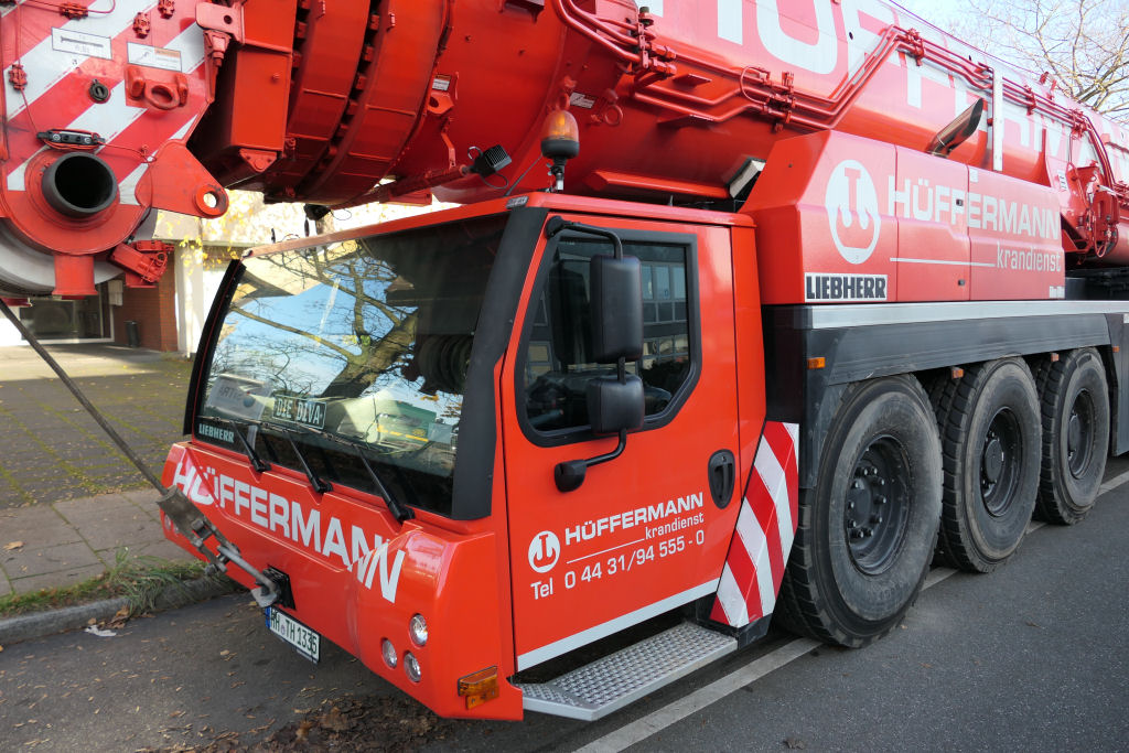 Dienst. Das Besondere: Der Kran kam in rot und mit Hüffermann