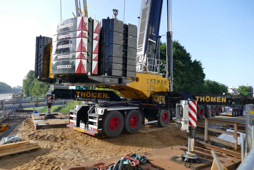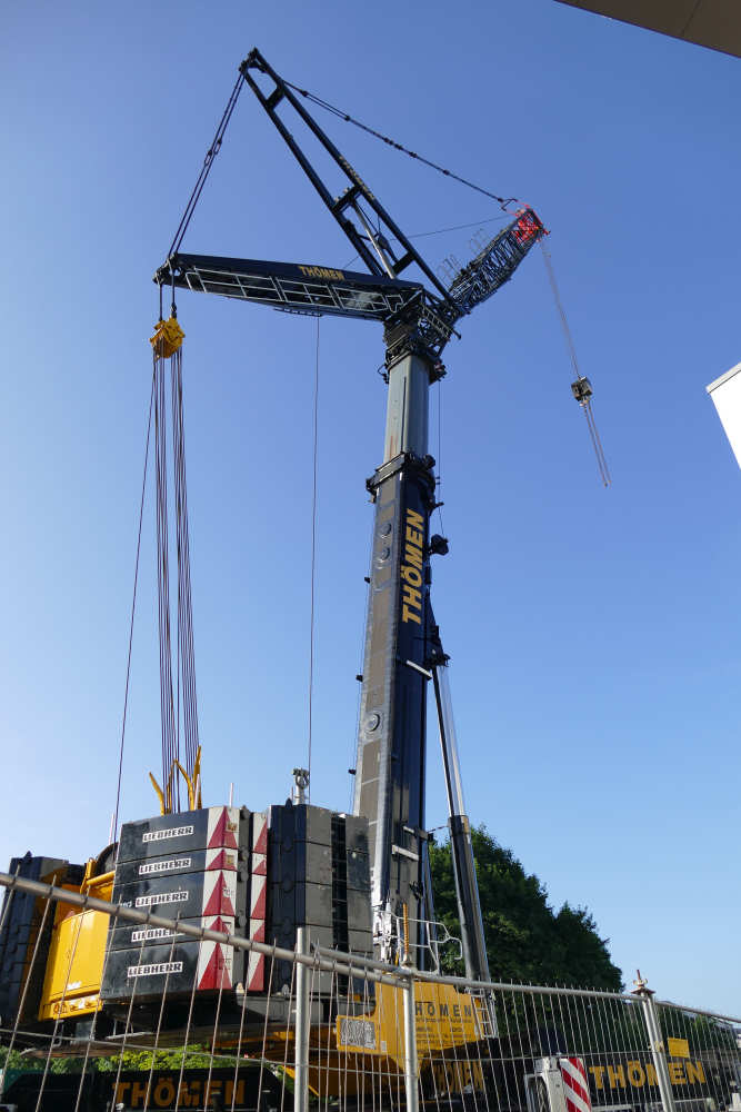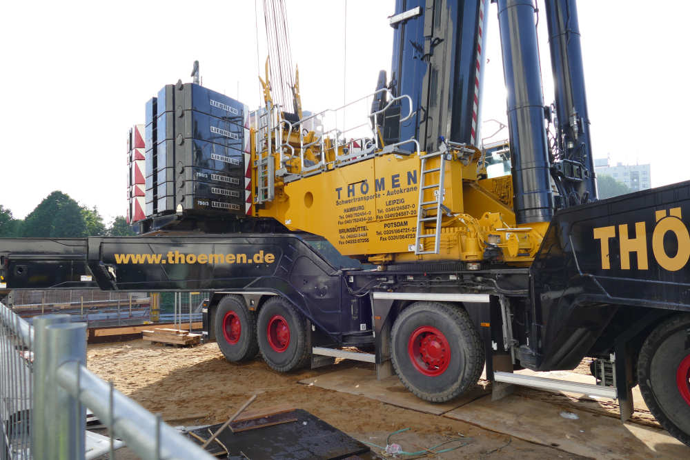 Deshalb kam auf der Westseite auch der LTM 1750-9.1 von Thömen Leipzig mit 204 t Ballast und 24,5 m Wippspitze