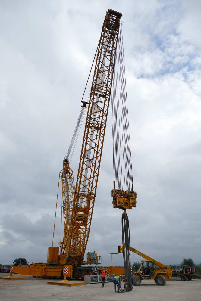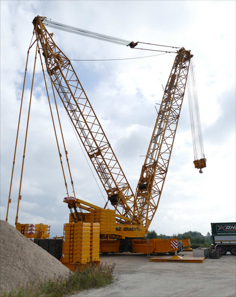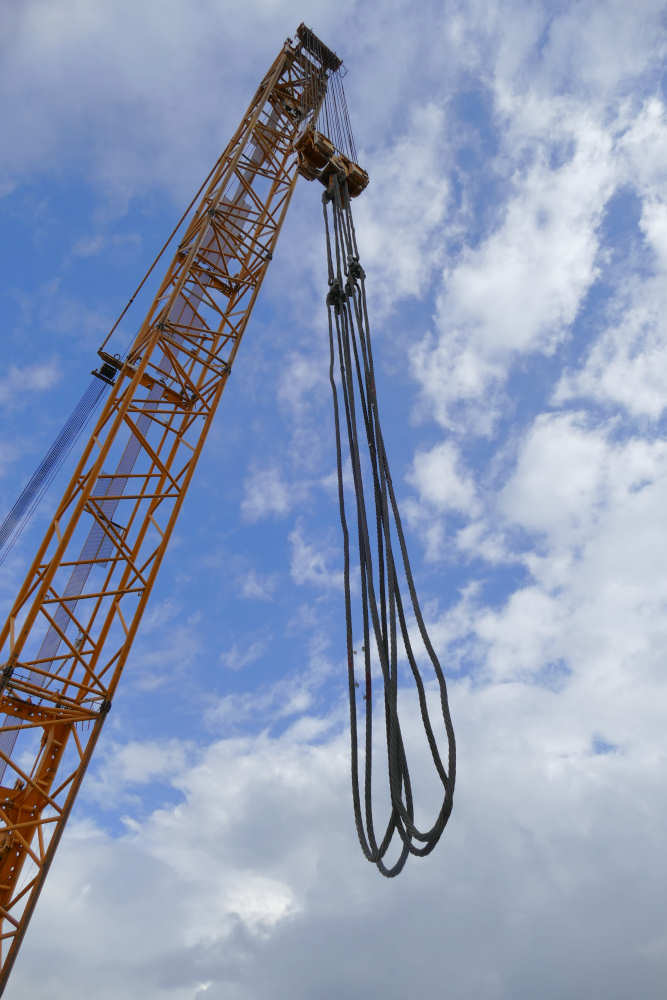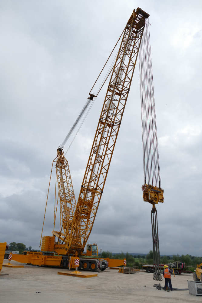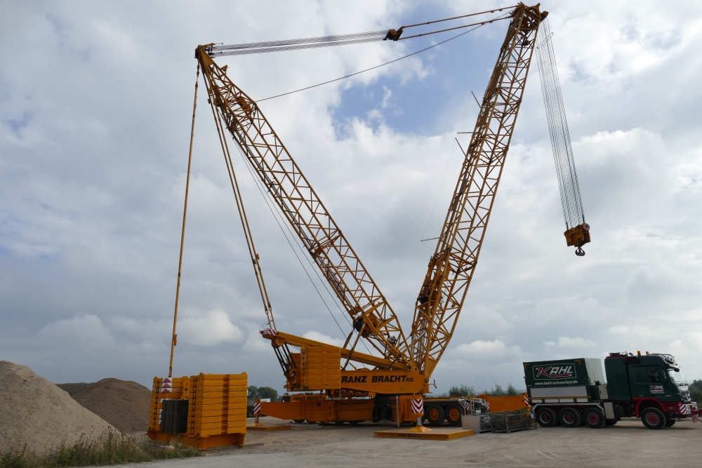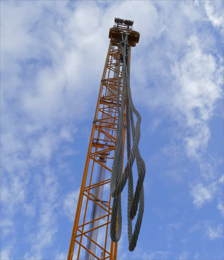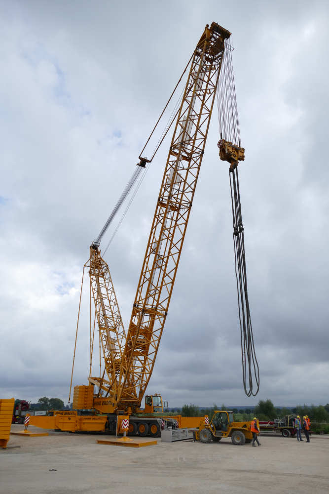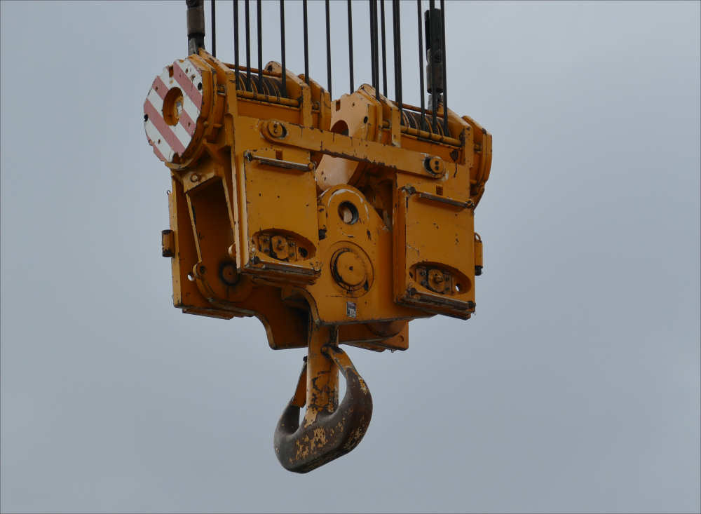Gelber Kran in Lauenburg Aufnahmen in Arbeitsstellung
