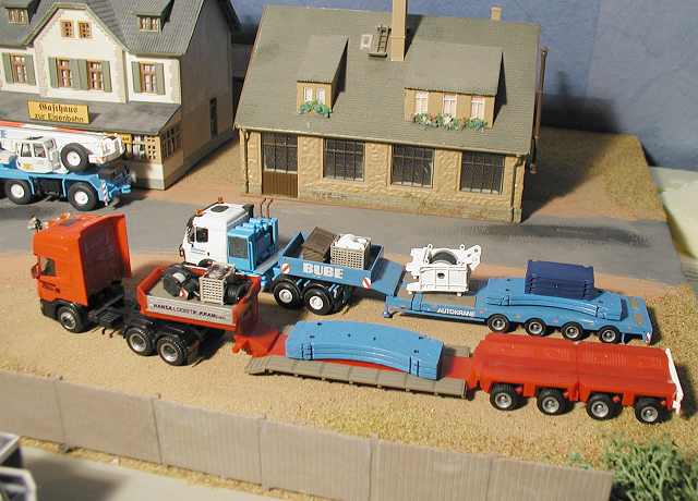Beide Begleittieflader auf der Straße.