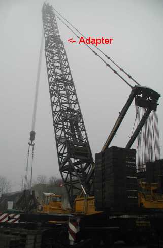 Der Liebherrgittermastkran LG 1550 hat ein Auslegersystem, welches u.a. einen schweren (S),