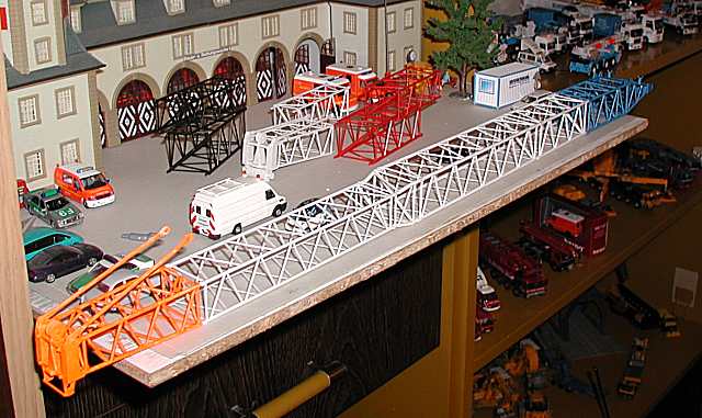 im Bild rechts : Mastunterteil und einen leichten (Li) Hauptausleger , im Bild oben: Mastoberteil, beinhaltet.