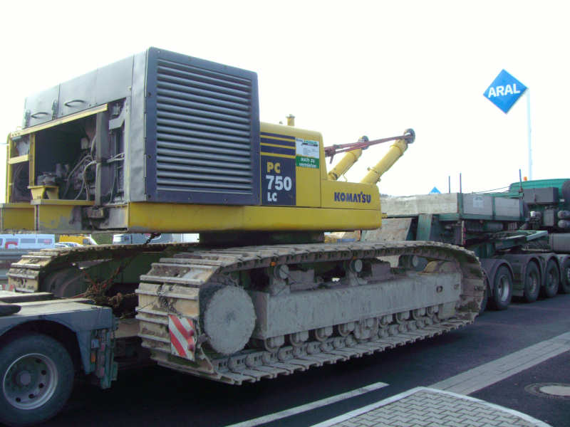 Transport einmes Komatsu PC 750 LC