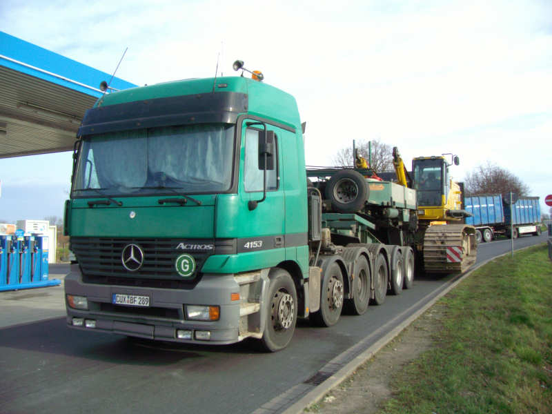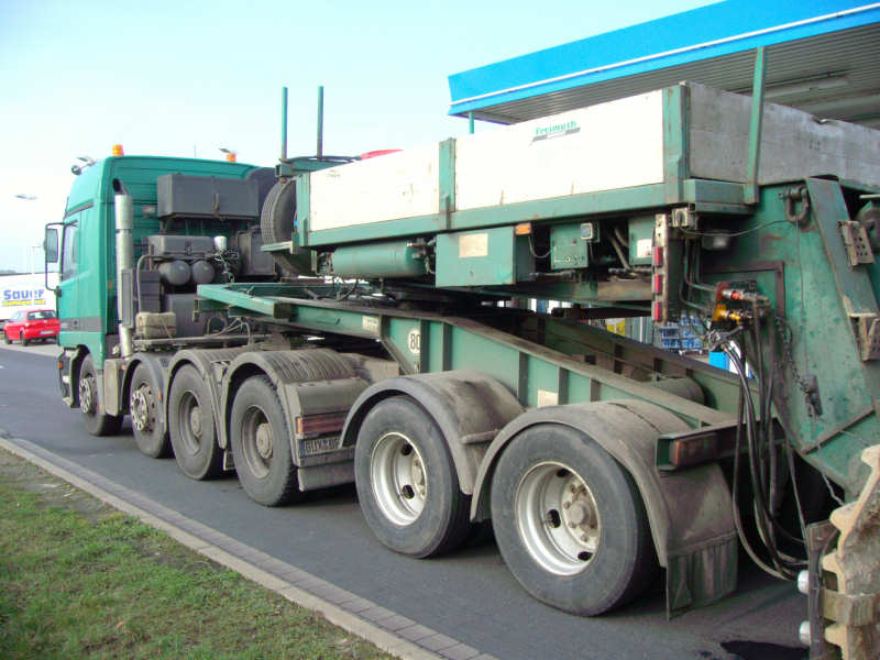 Im Sommer 2007 konnte Günter Eibig diesen Baggertransport von Bodo Freimuth auf dem Parkplatz Seesen an der A 7 ablichten.