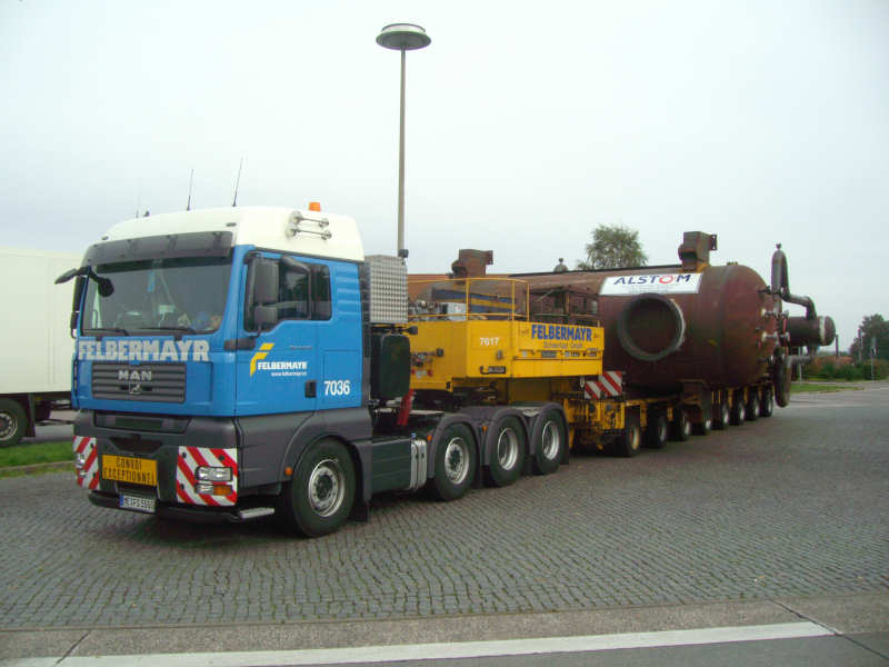 Einige Bilder von zwei Transporten mit Kesselanlagenteilen von Alstom.