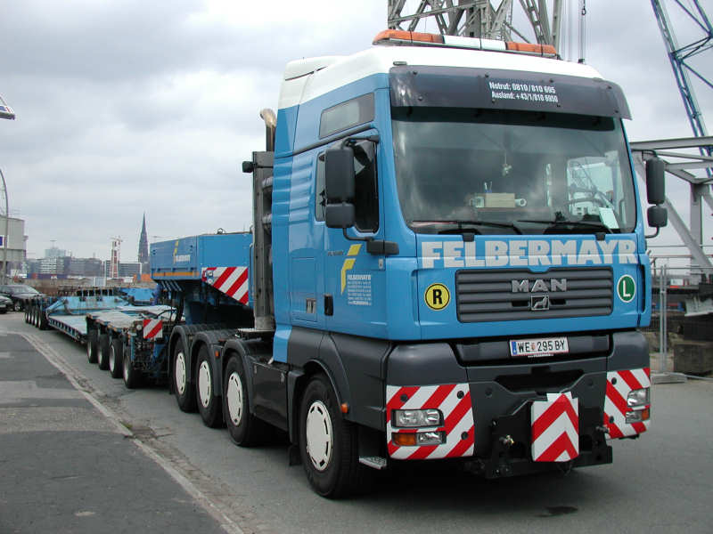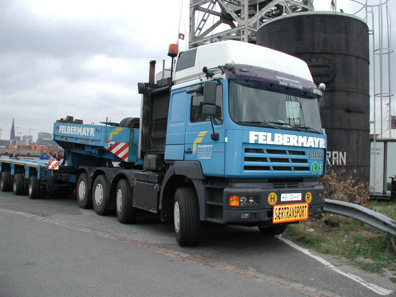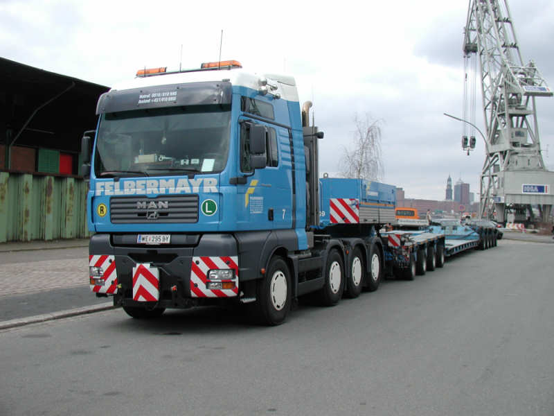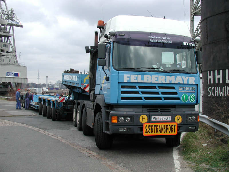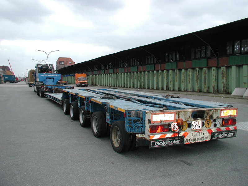 im Hamburger Hafen auf zwei Felbermayr Tieflader verladen,