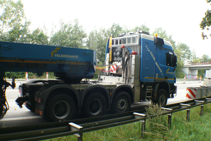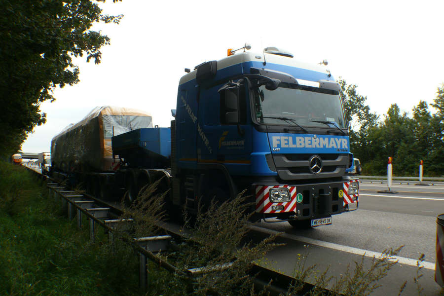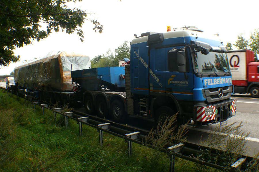 MB 4165 MP 3 Titan 8x6, Transport einer Schienenfräse für den Export