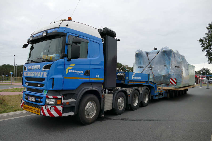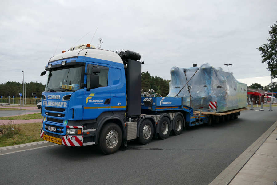 Die Komponenten wurden ua. durch Felbermayr in den Norden zu den Exporthäfen gefahren.
