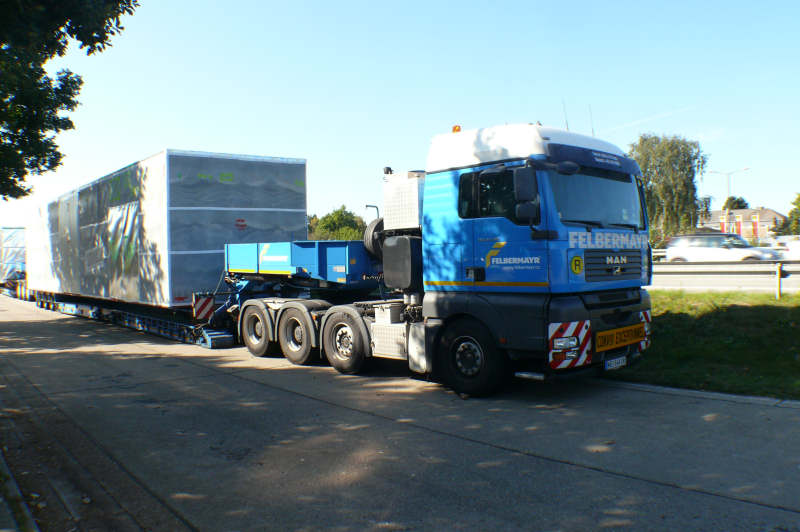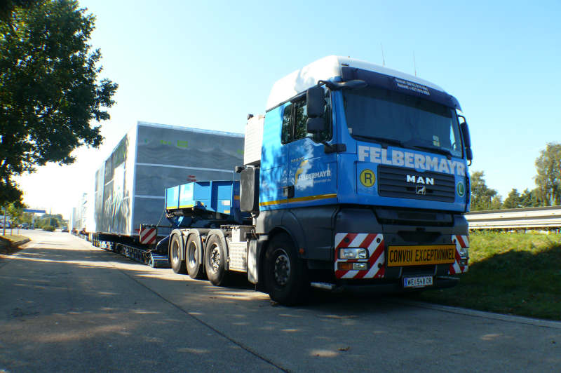 Im September 2008 transportierte Felbermayr Raumzellen für ein Krankenhausprojekt in Russland.