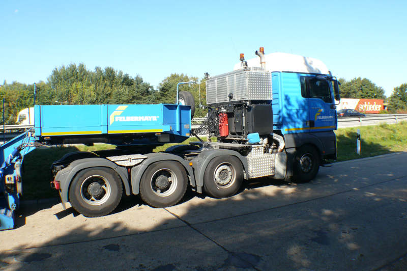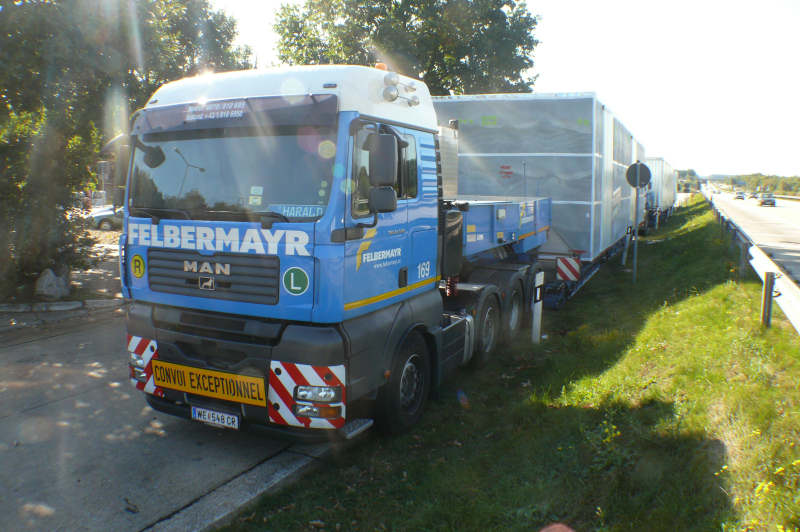 Zugmaschinen waren 2x MAN TGA 41.530 und 1x MAN TGA 41.540 jeweils mit Faymonville Tiefbettaufliegern.