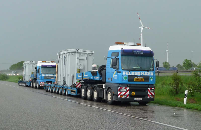 Diese zwei kleineren Trafo Transporte konnte Christian Gröpper im Mai 2010 auf dem Rasthof Börde,