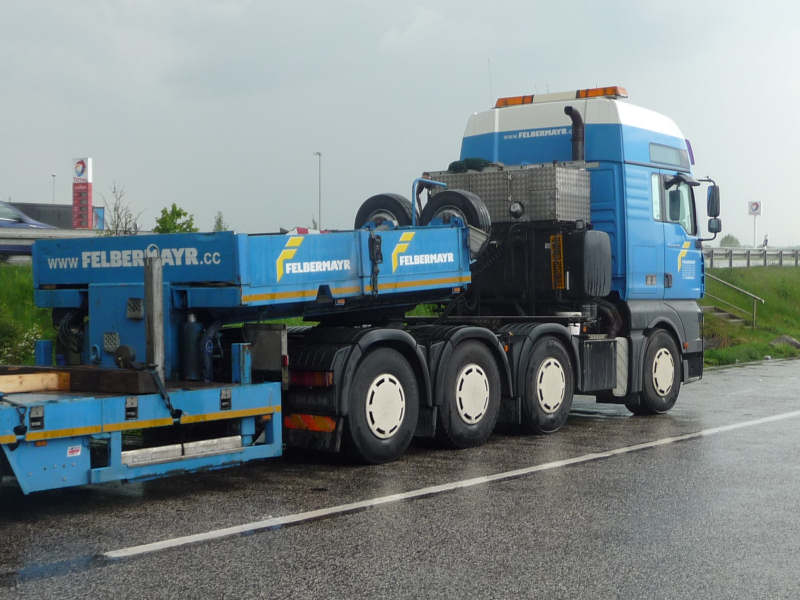 Der erste Zug bestand aus MAN 41.530 mit Faymonville achtachs Semitieflader