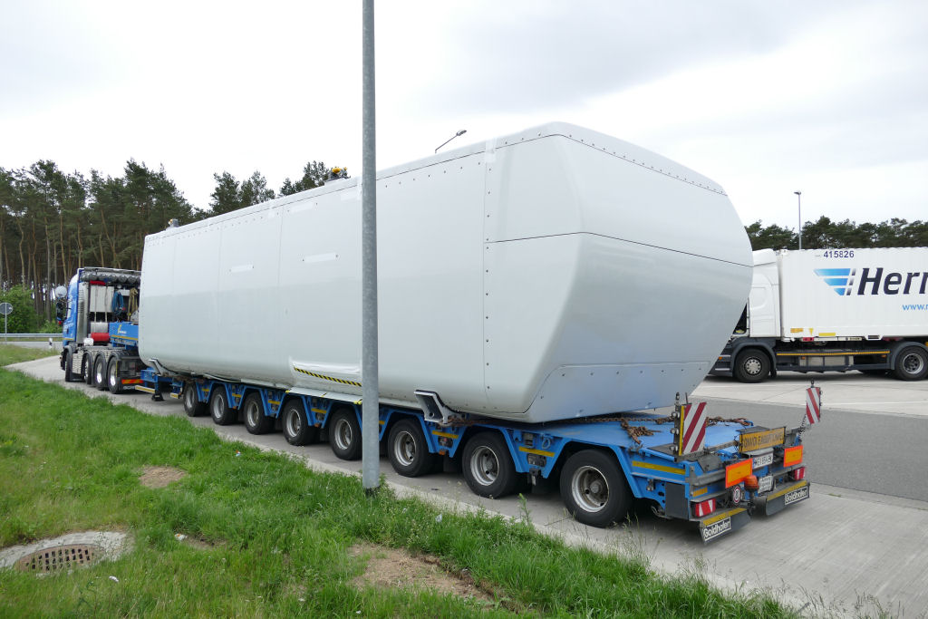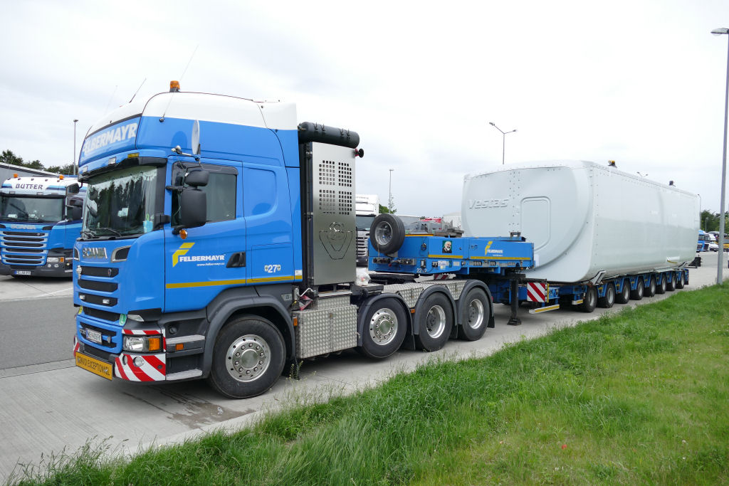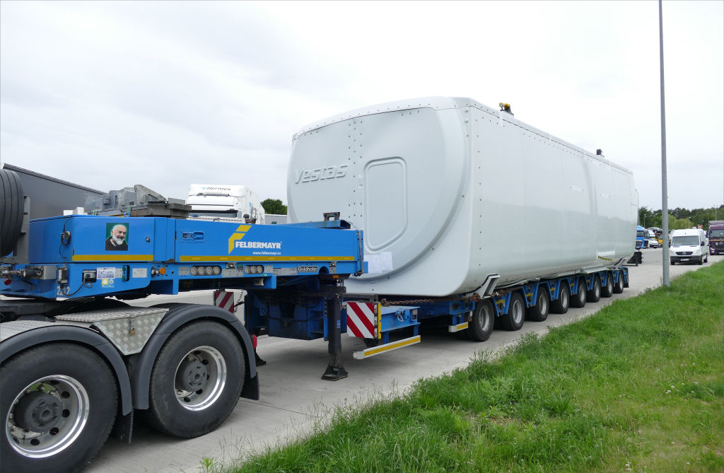 Transportiert wurde ein Vestas Maschinenhaus für eine Windenergieanlage, mit dem Ziel Österreich.