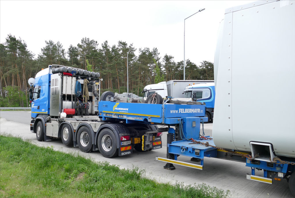 Im Mai 2019 konnte ich diesen Transport von Felbermayr auf dem Rastplatz Hasselhöhe an der A 7 fotografieren.