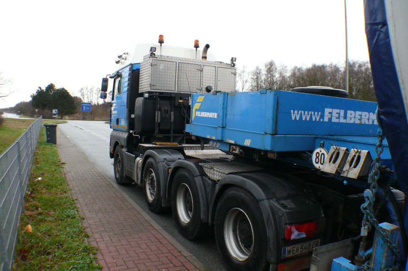 Im Jahr 2009 war Felbermayr häufig mit Teilen für Windenergie Anlagen unterwegs,