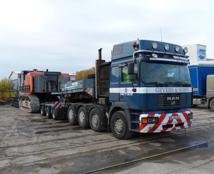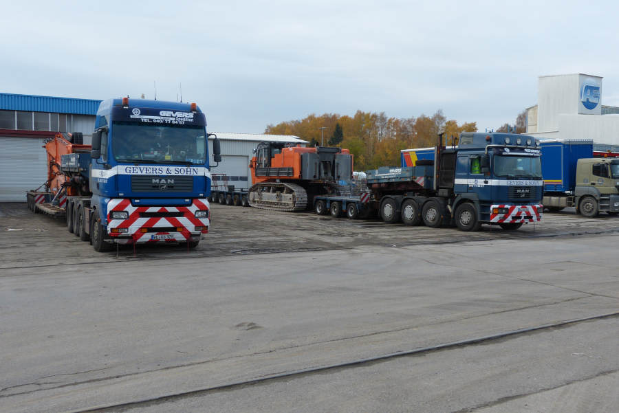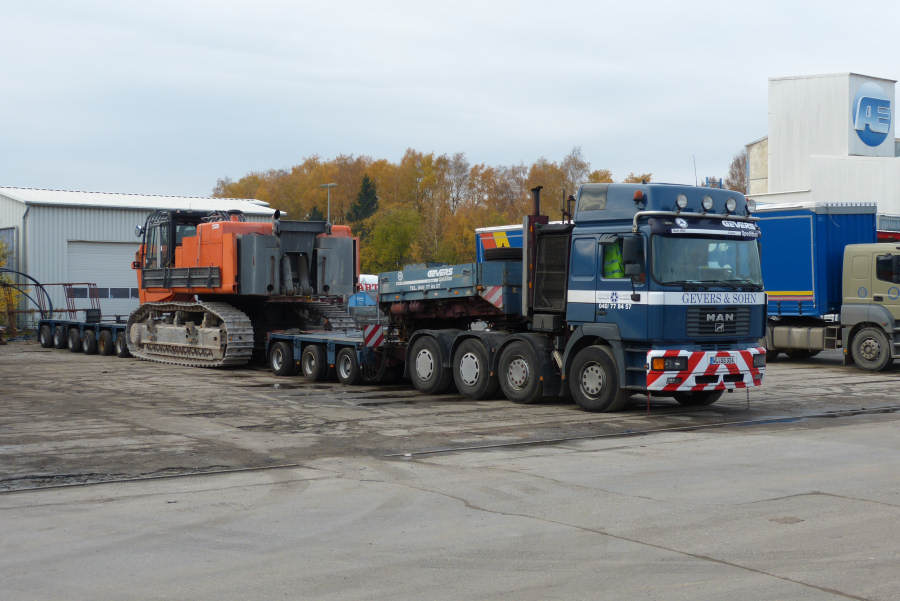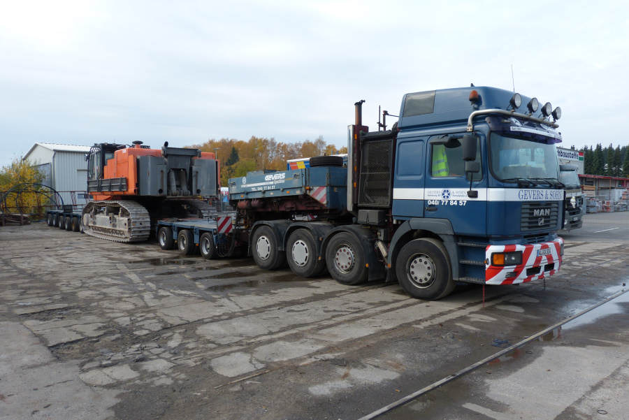MAN 41.604 und MAN 41.530 Transport Hitachi Zaxis 670 LCH Abbruchbagger