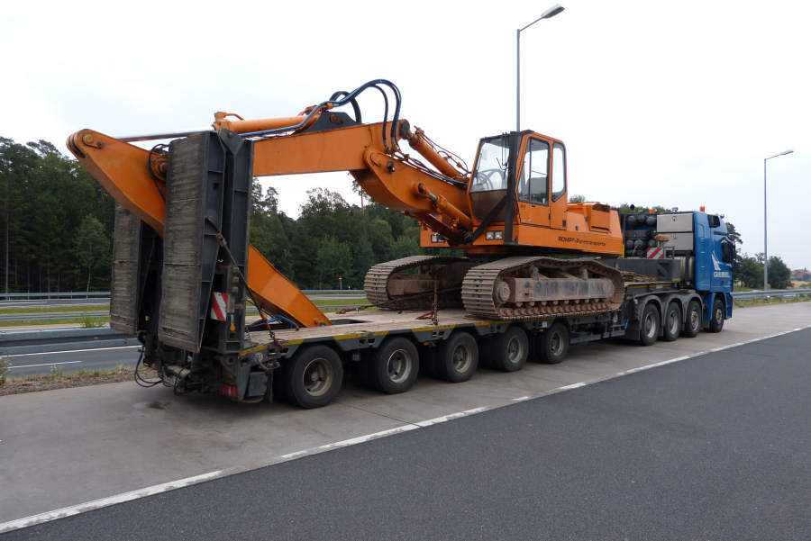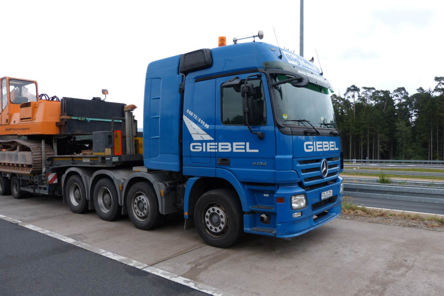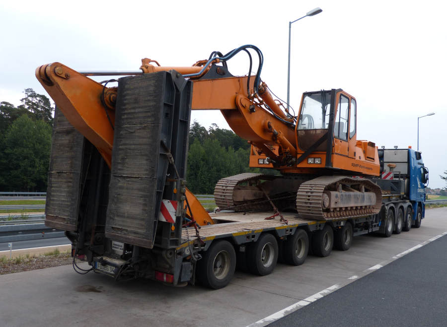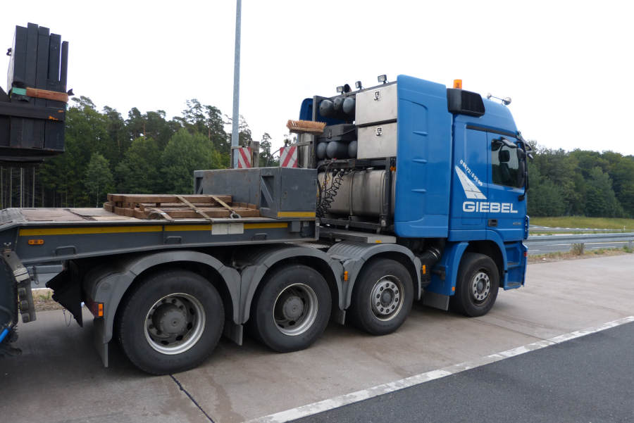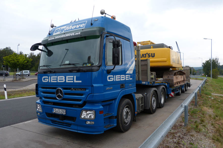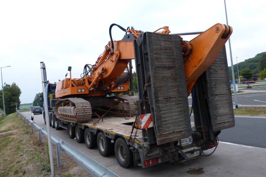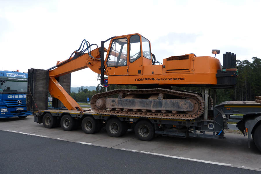 Giebel, zwei Baggertransporte auf der Raststätte Rhön