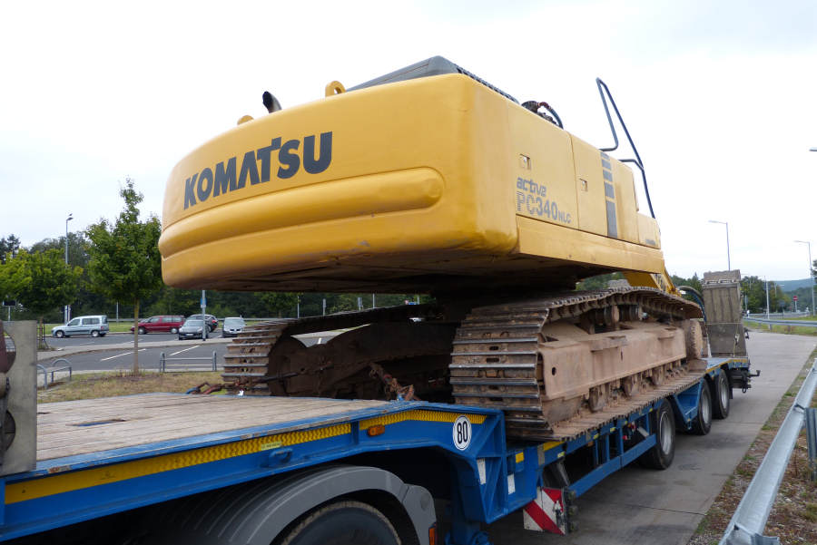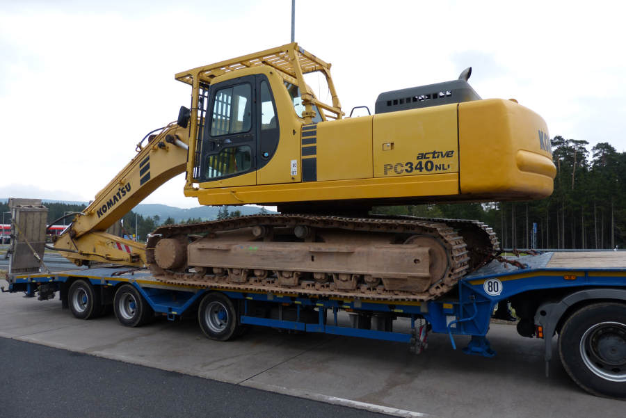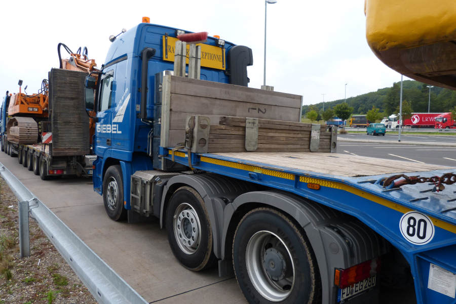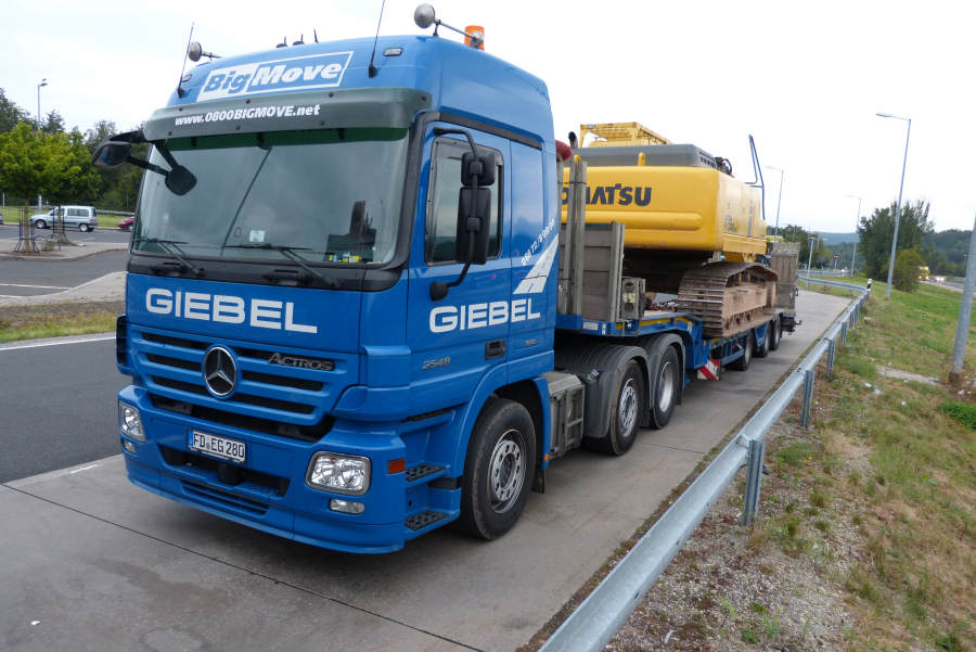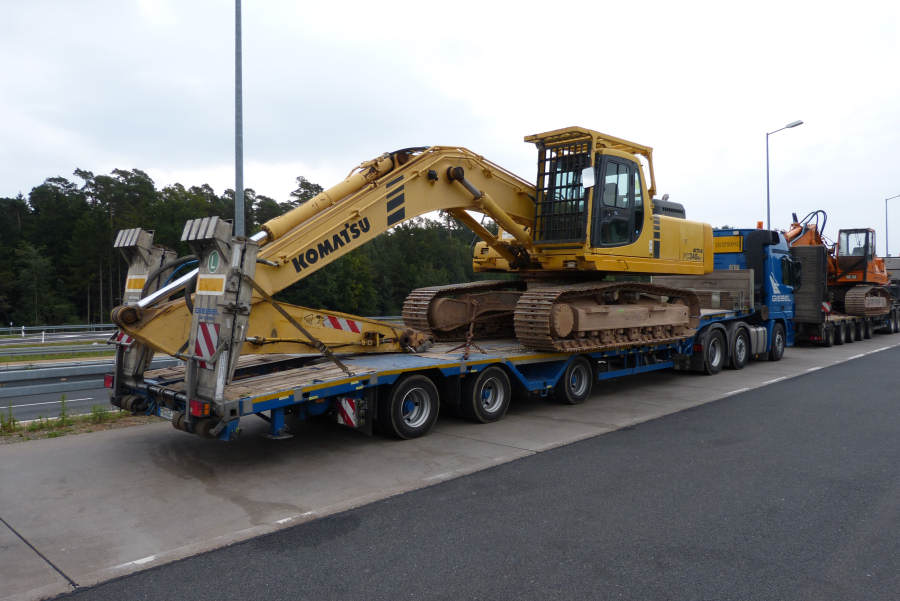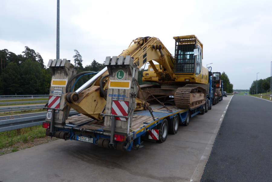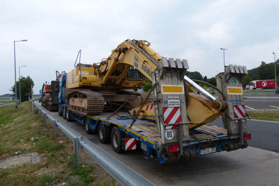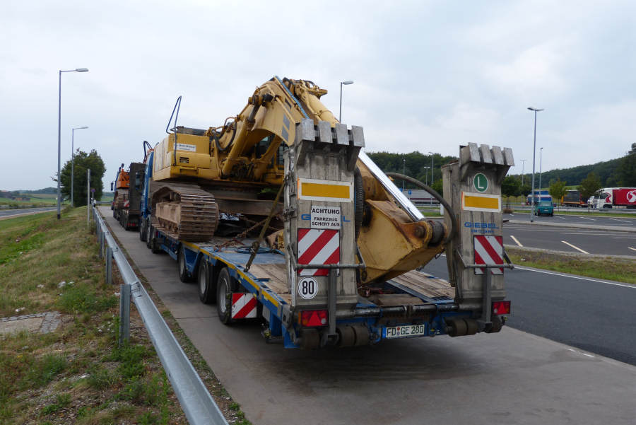 Giebel, zwei Baggertransporte auf der Raststätte Rhön