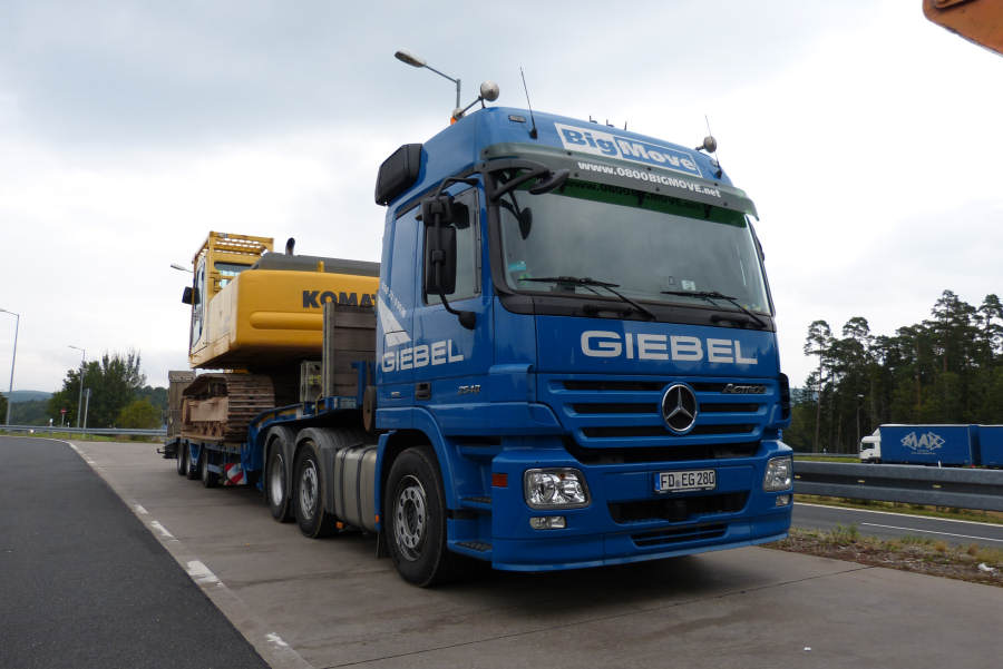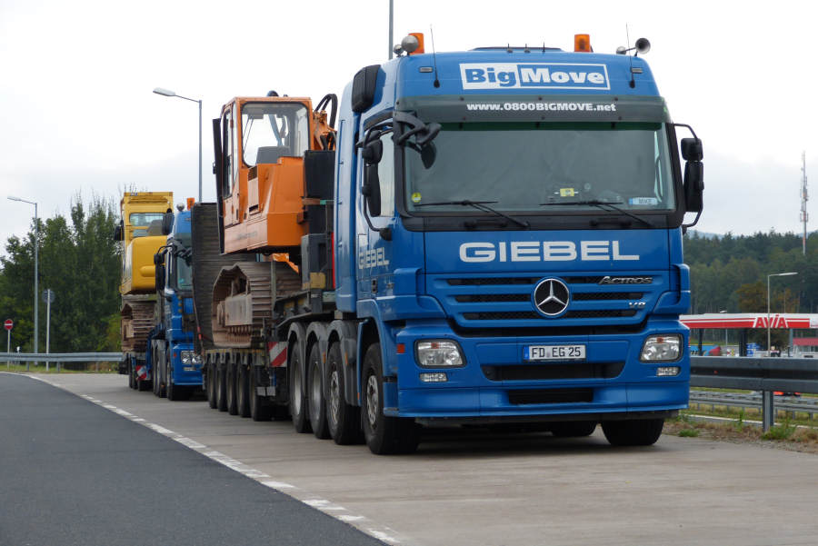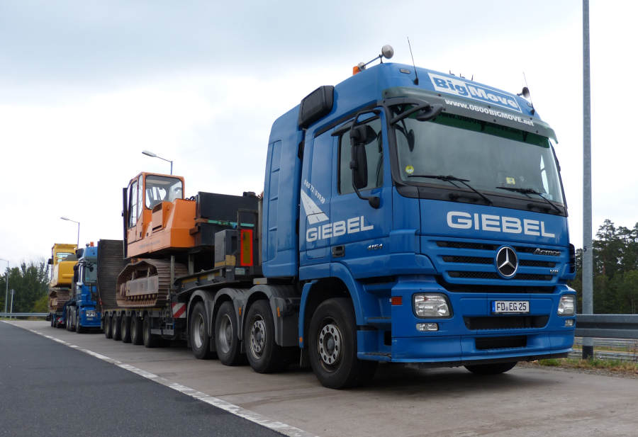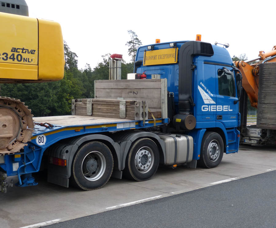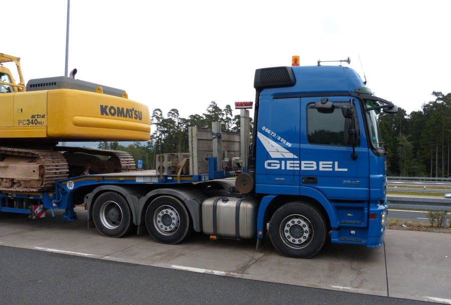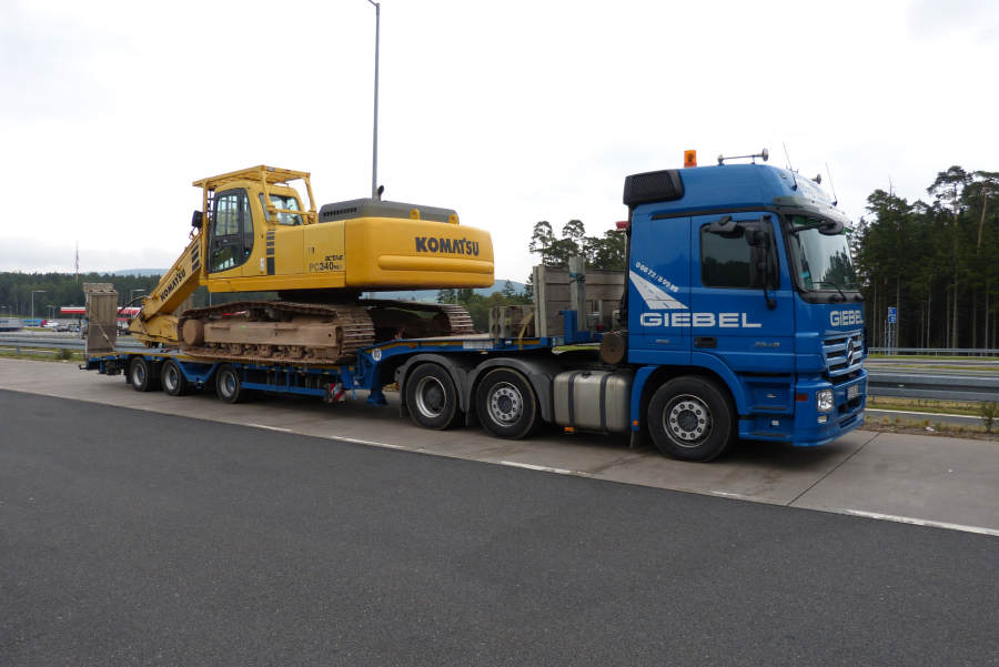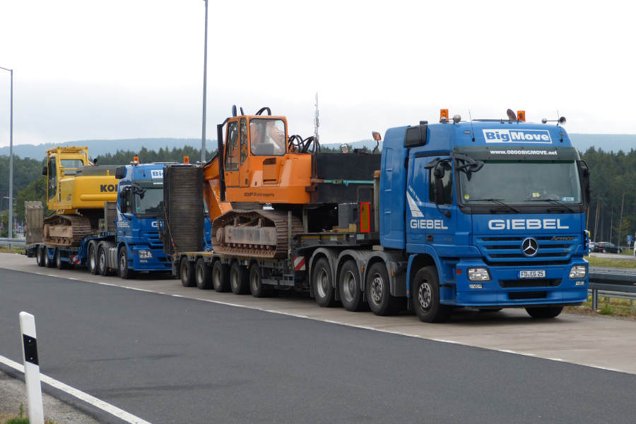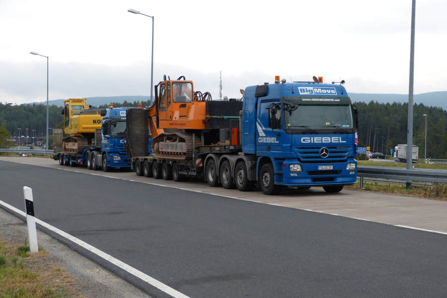 Giebel, zwei Baggertransporte auf der Raststätte Rhön