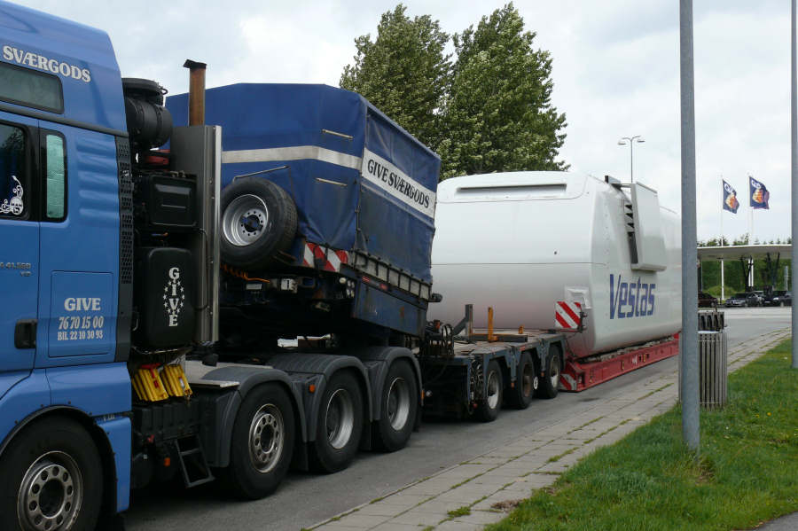 Transportiert wurde ein Vestas V 90 Maschinenhaus für den Windpark Ketzin.