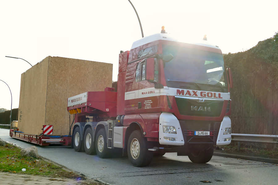 MAN 41.540 TGX Euro 6 mit kleinem Überseekistentransport