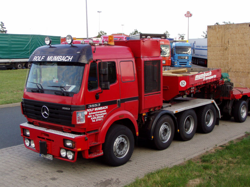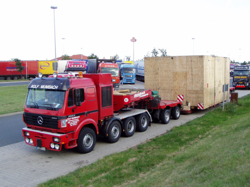 Diese MB 3553 SK von Rolf Mumbach, mit einem Übeseekistentransport, entdeckte Ulrich Grusemann auf einer Raststätte.