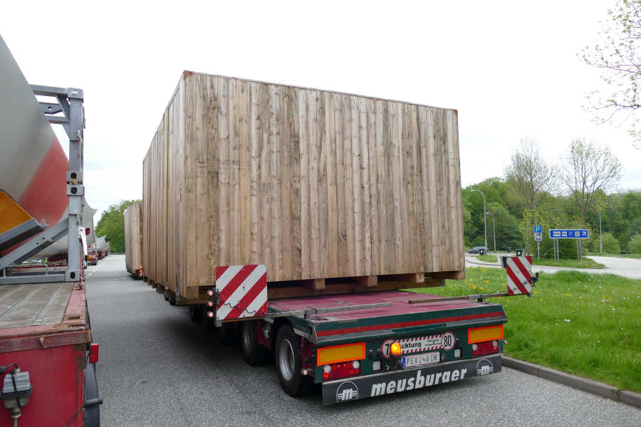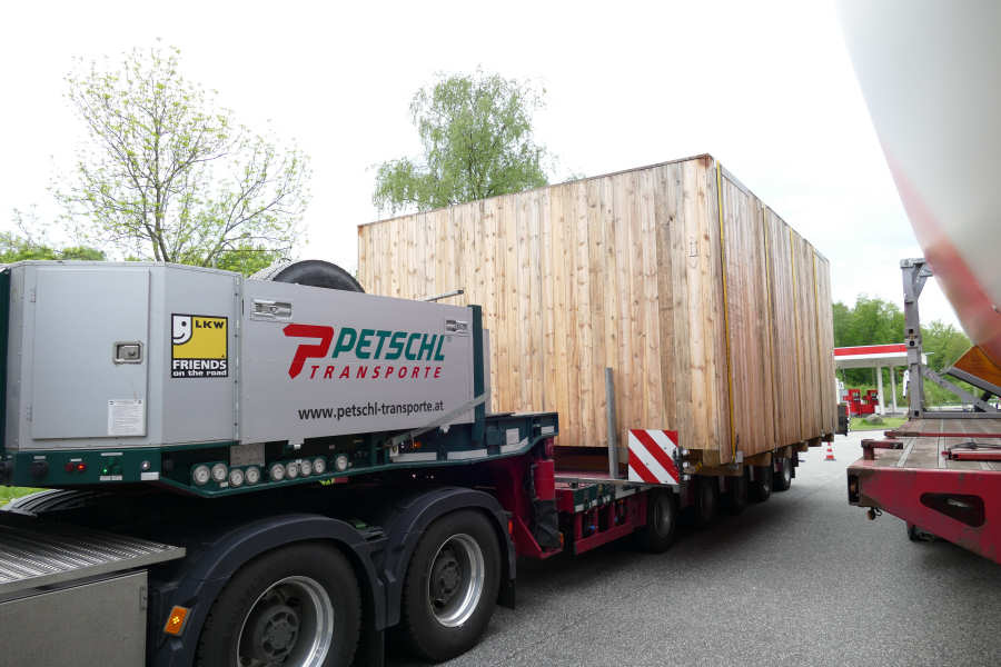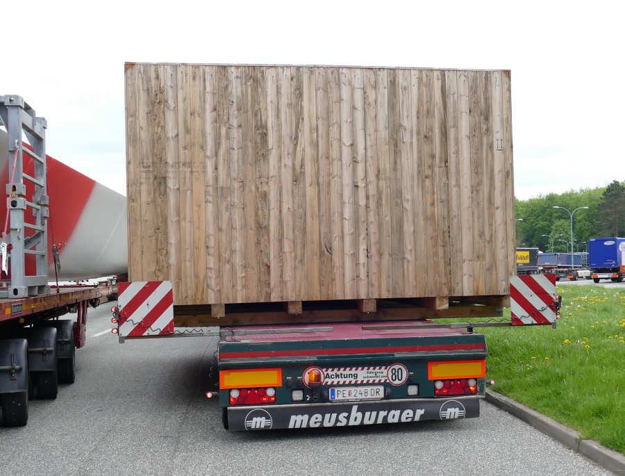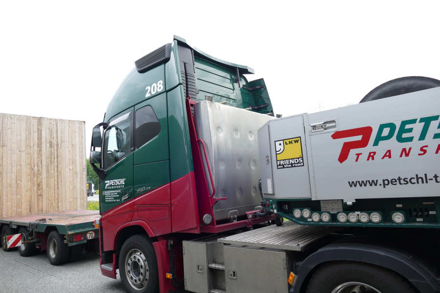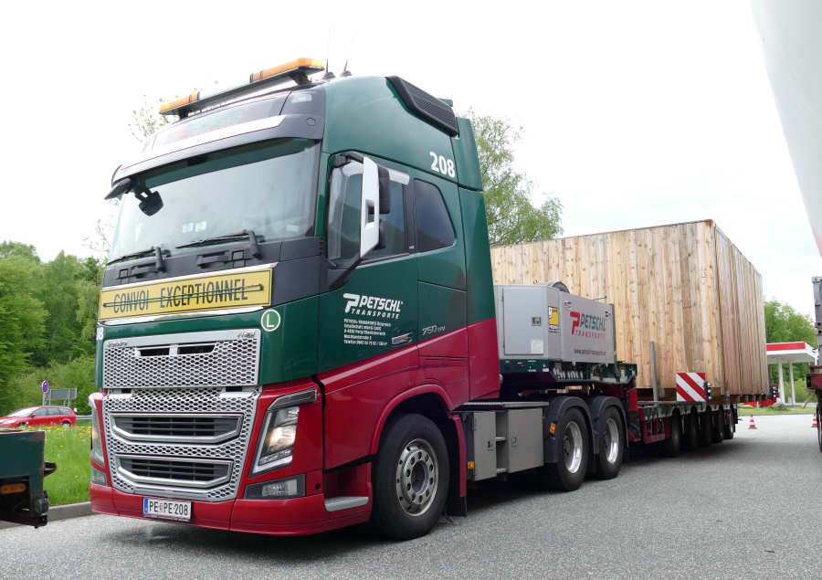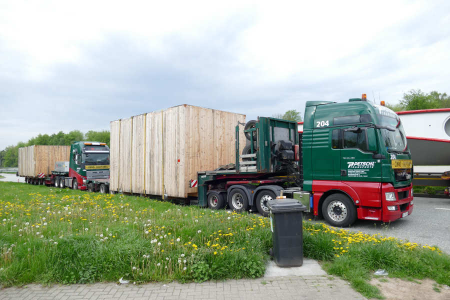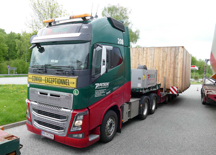 MAN 26.480 TGX 6x2/4 und Volvo FH 16 750 6x4 mit überbreiten Maschinenkisten für den Export