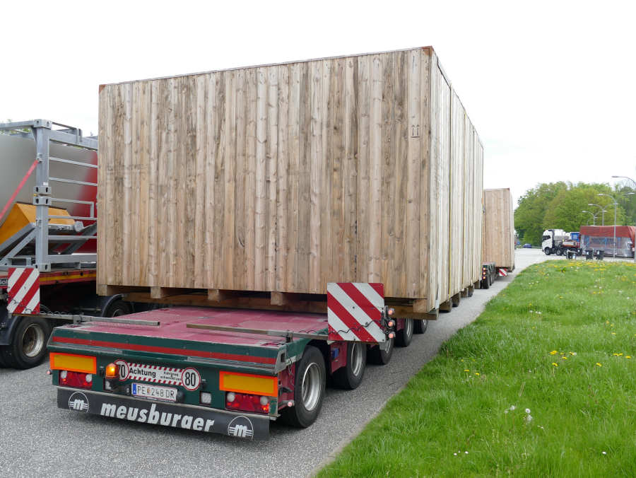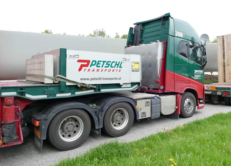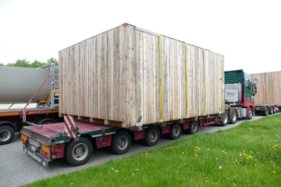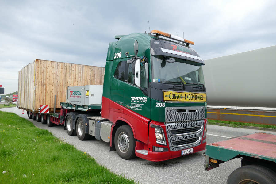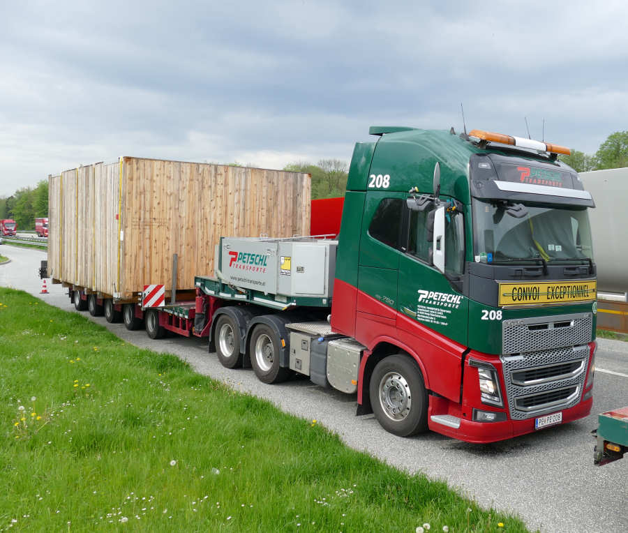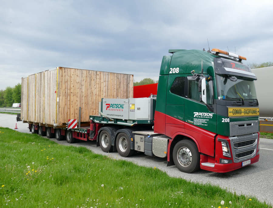 MAN 26.480 TGX 6x2/4 und Volvo FH 16 750 6x4 mit überbreiten Maschinenkisten für den Export