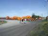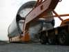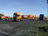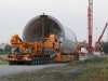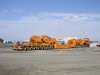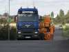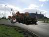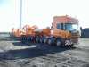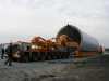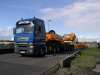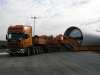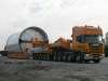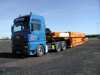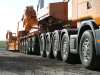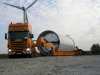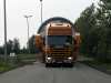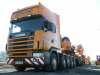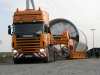 zur Baustelle zu transportieren. Hierfür wurde die fünfachsige Scania Zugmaschine mit einer 180 t Goldhofer