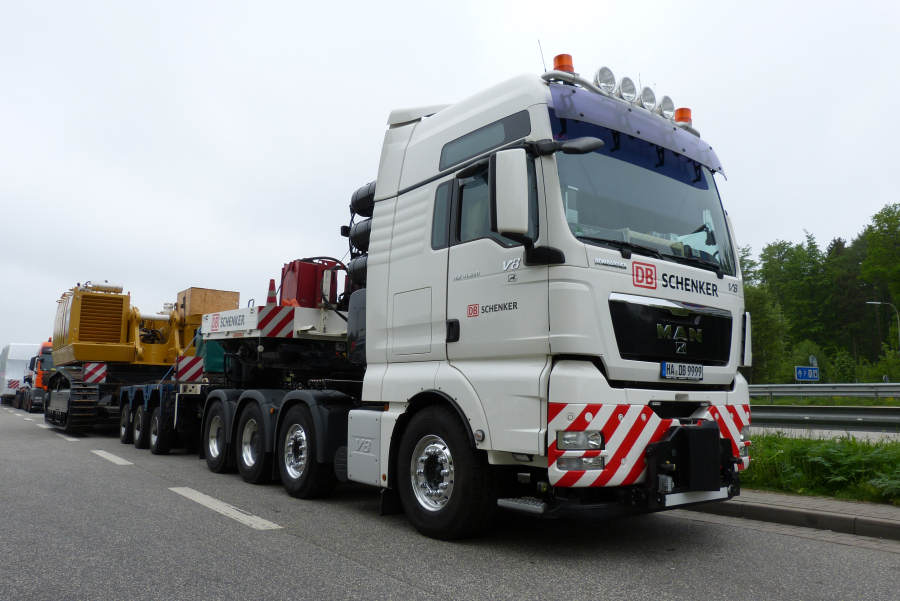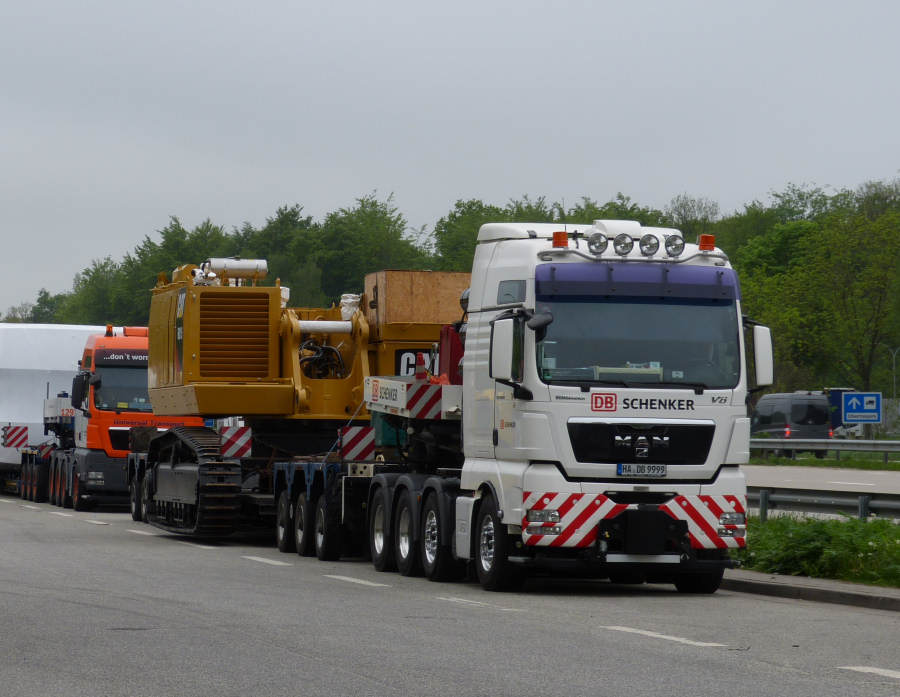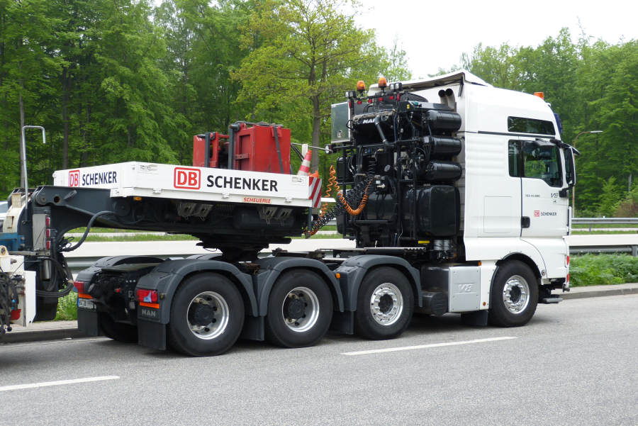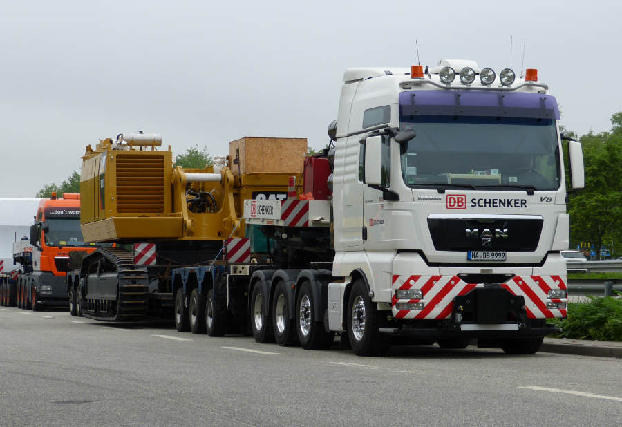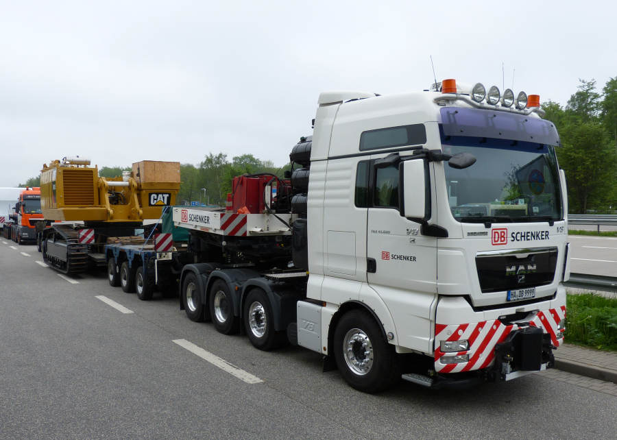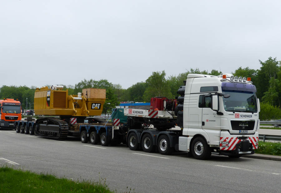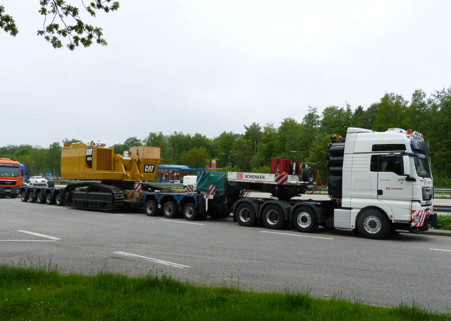 Schenker, MAN 41.680 TGX mit CAT 6015 Bagger Grundgerät