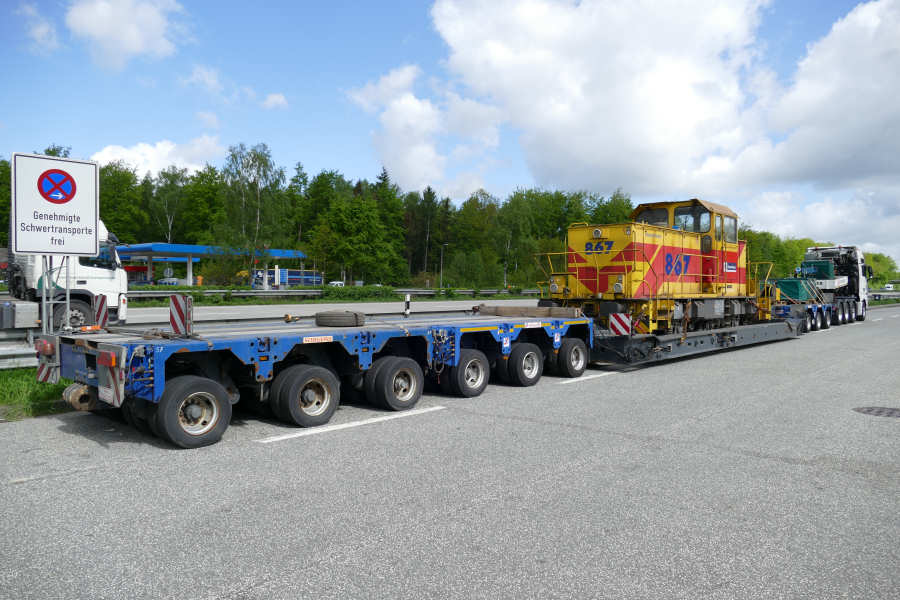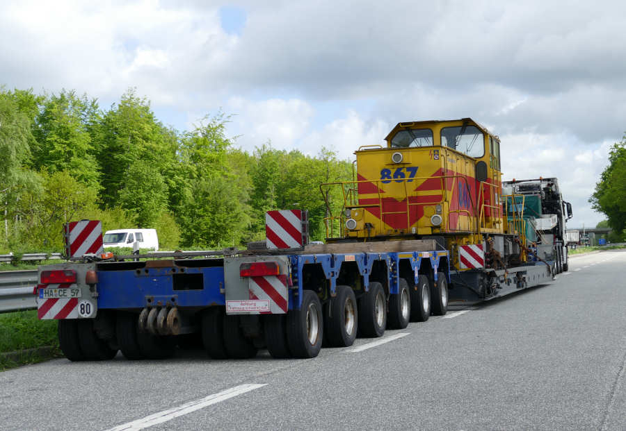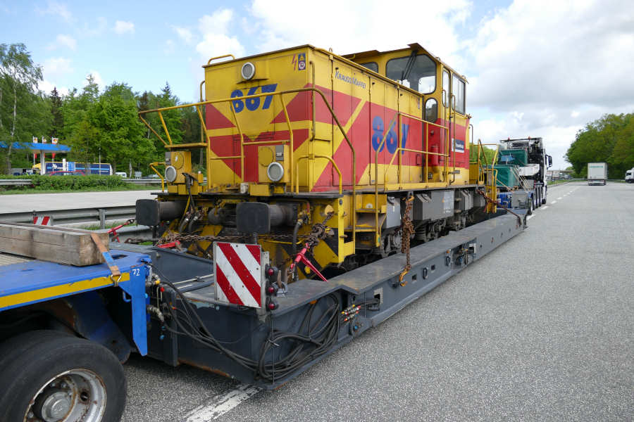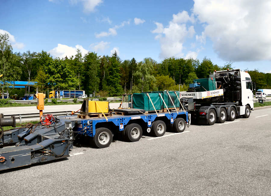 Schenker, MAN 41.680 TGX mit Diesellok Transport