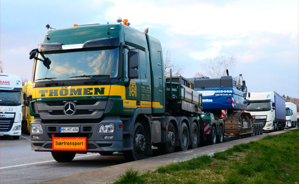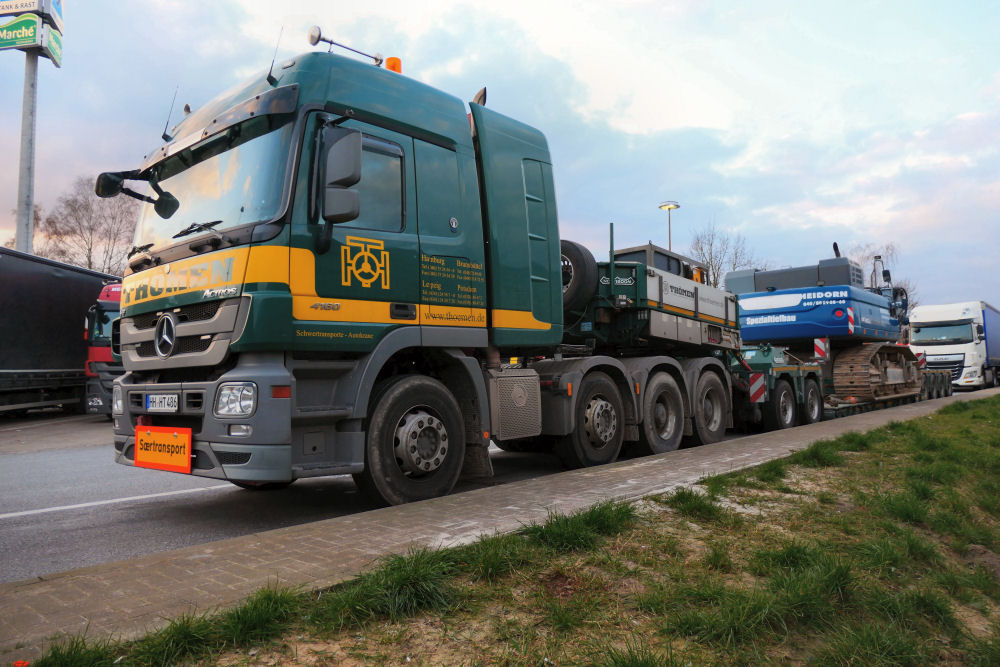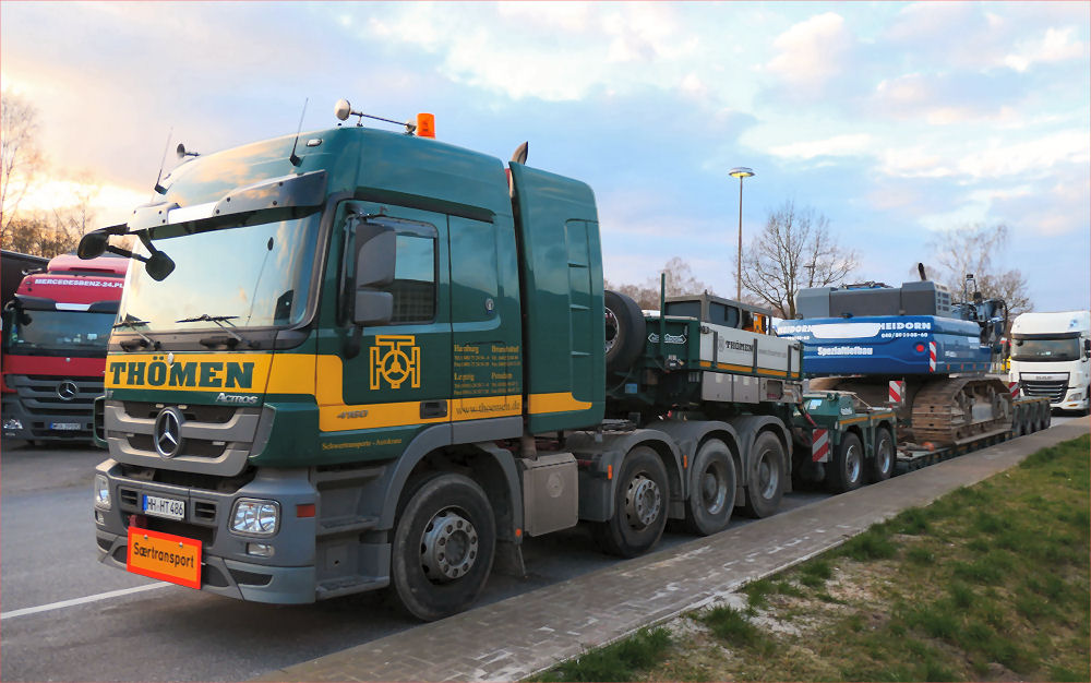 Die Schwerlastkombination bestand aus MB 4160 MP 3 Titan mit Nooteboom Euro ICP 2/4 Tieflader.