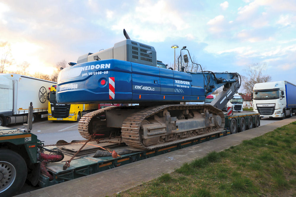 Transportiert wurde der Doosan DX 490 LC Hydraulikbagger von Heidorn.