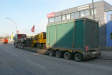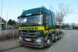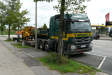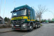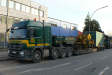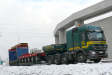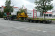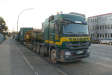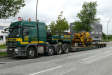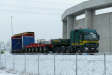 Die Zugmaschine zieht hauptsächlich einen vierachsigen Faymonville Tiefbett Tieflader.