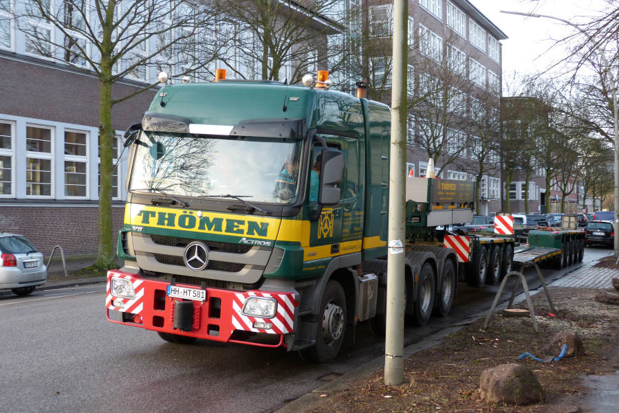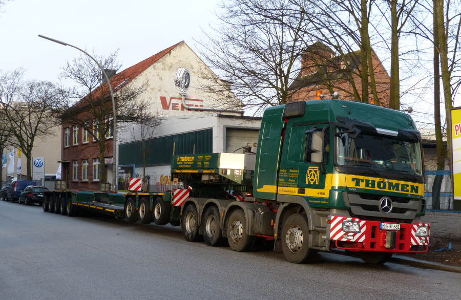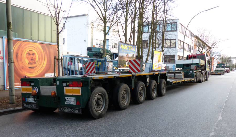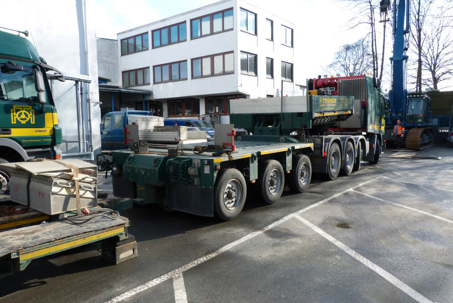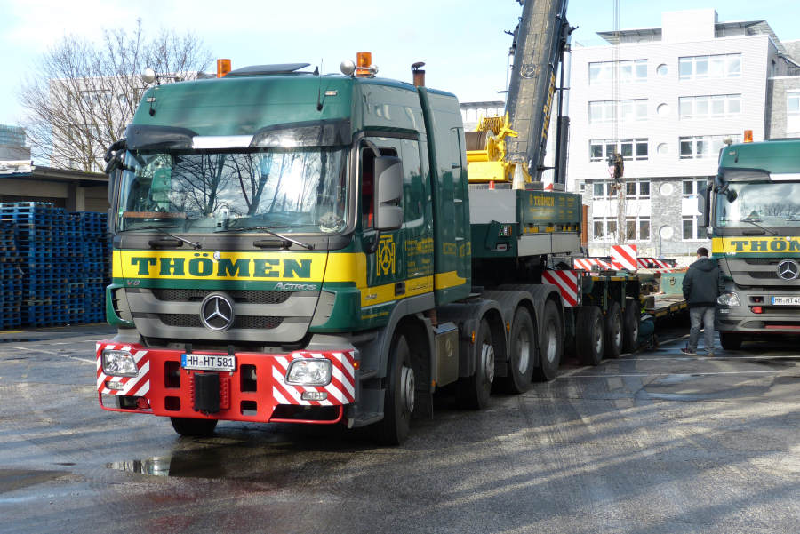 Für den Transport kam die MB 4160 MP 3 Titan HH HT 581 mit dem Goldhofer THP XLE 3/5Tieflader zum Einsatz.
