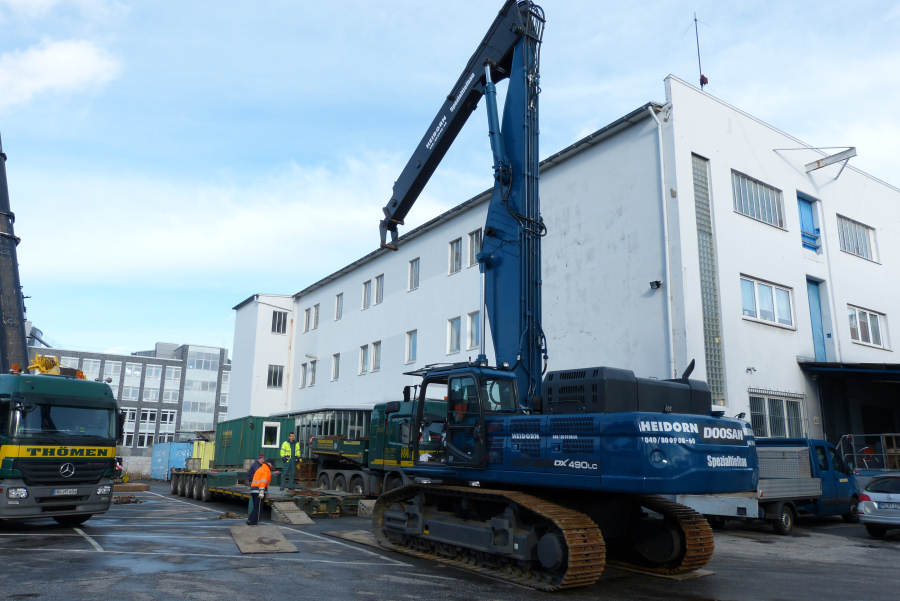 Im Februar 2014 hatte Thömen den Auftrag einen 56 t schweren Hydraulikbagger von einem Ponton