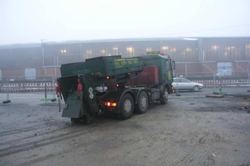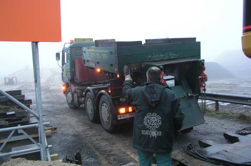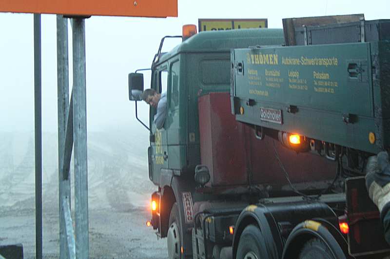 Nun wird die Zugmaschine mit dem Schwanenhals wieder an das Tiefbett gefahren