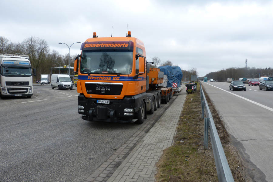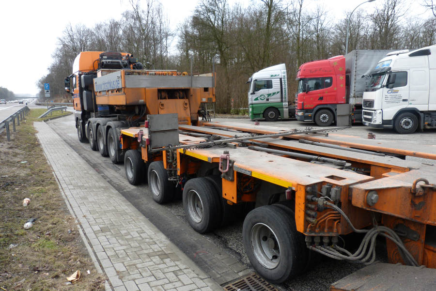 mit zwischengekoppeltem Tiefbett, auf der Raststätte Buddikate an der A 1.