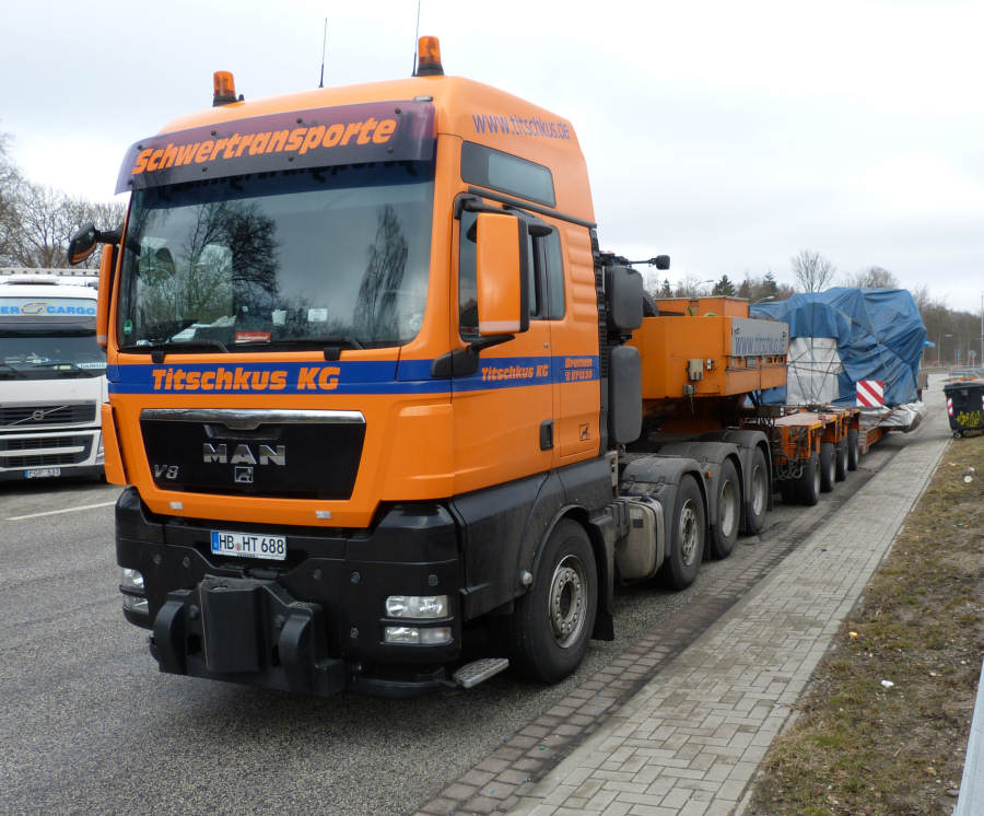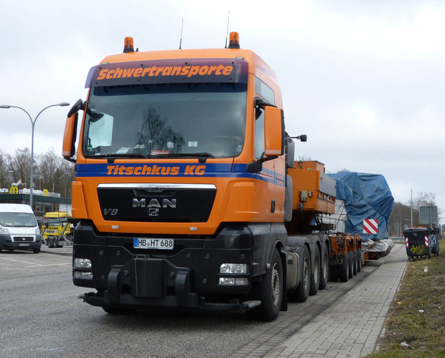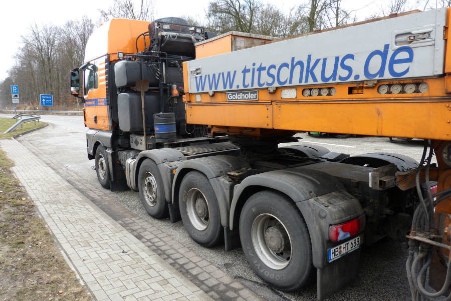 Im März 2013 stand diese MAN 41.680 TGX mit einer Goldhofer 4/6 THP Kombination