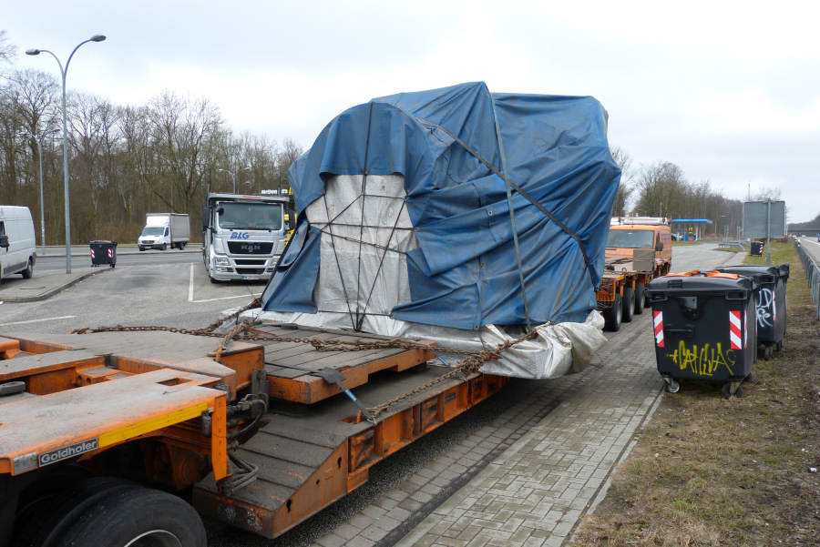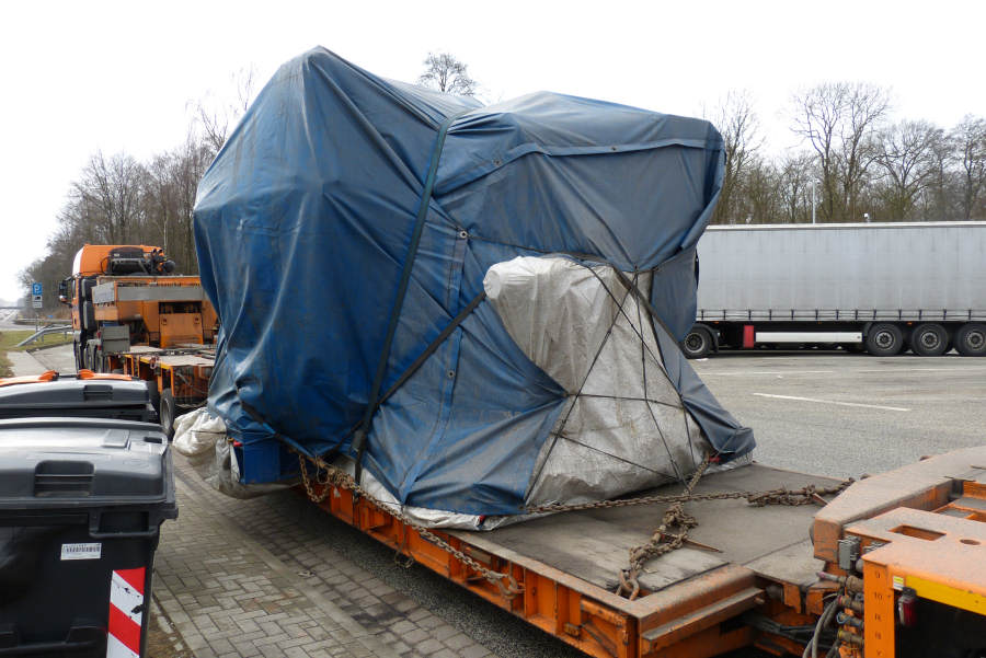 Die Ladung bestand aus einem abgeplanten Maschinenteil.