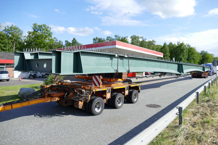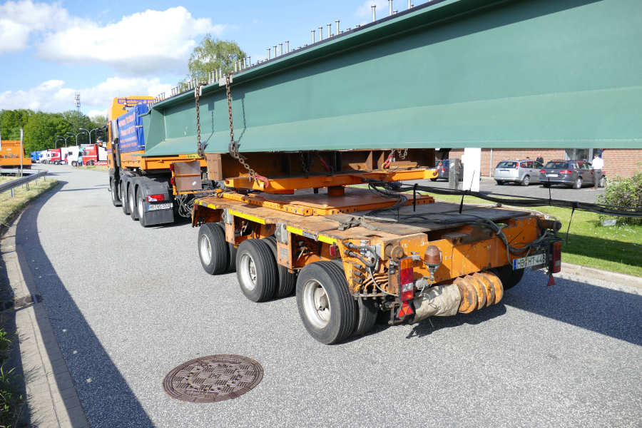 Zum Transport der 36 t schweren Konstruktion wählte man eine interessante Transportvariante.