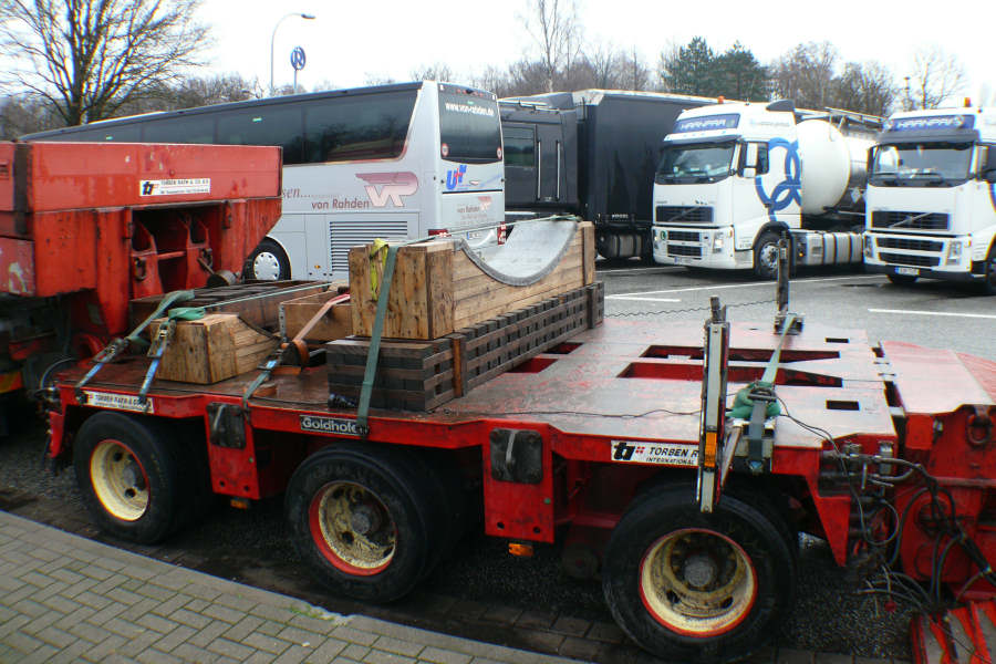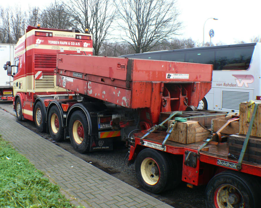 Die Schwerlastkombination bestand aus Scania 164 G 80 8x4 und Goldhofer THP 3/5 Sattelroller mit