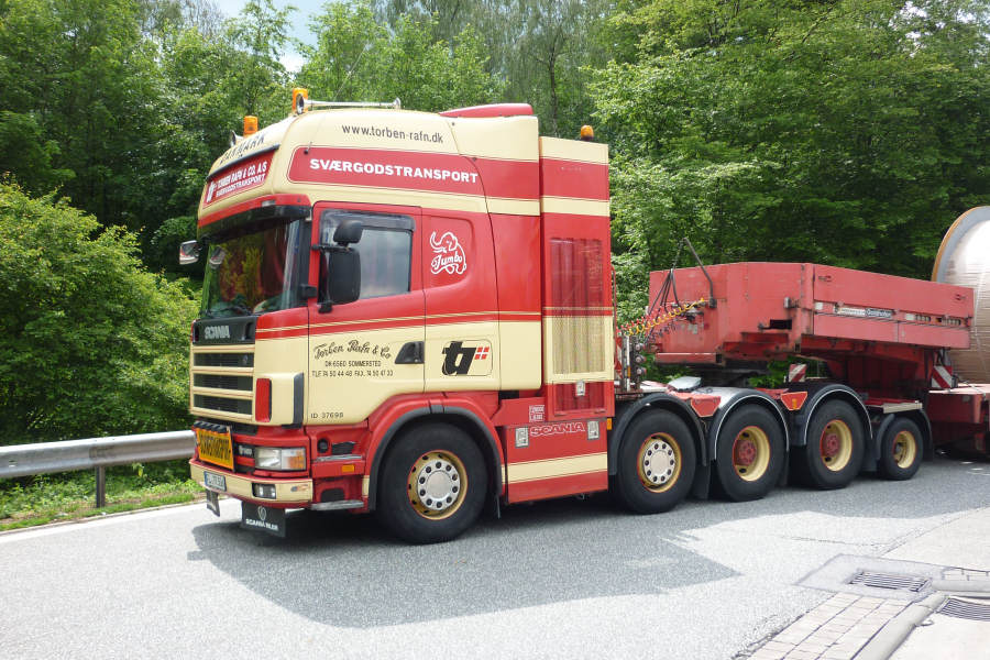 Die Schwerlastkombination bestand aus Scania 164 G 80 8x4 und Goldhofer THP 1/4 Sattelroller mit