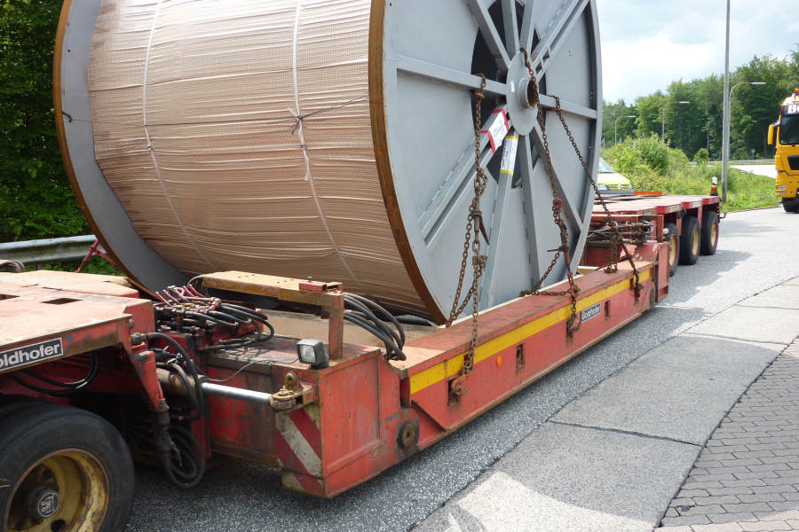 Im Juni 2012 stand dieser Transport einer Seekabeltrommel auf der Raststätte