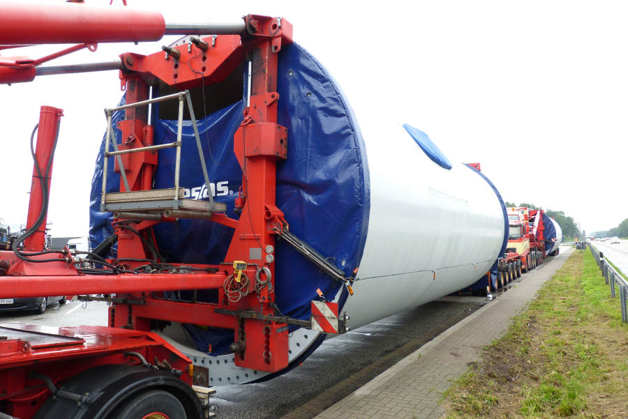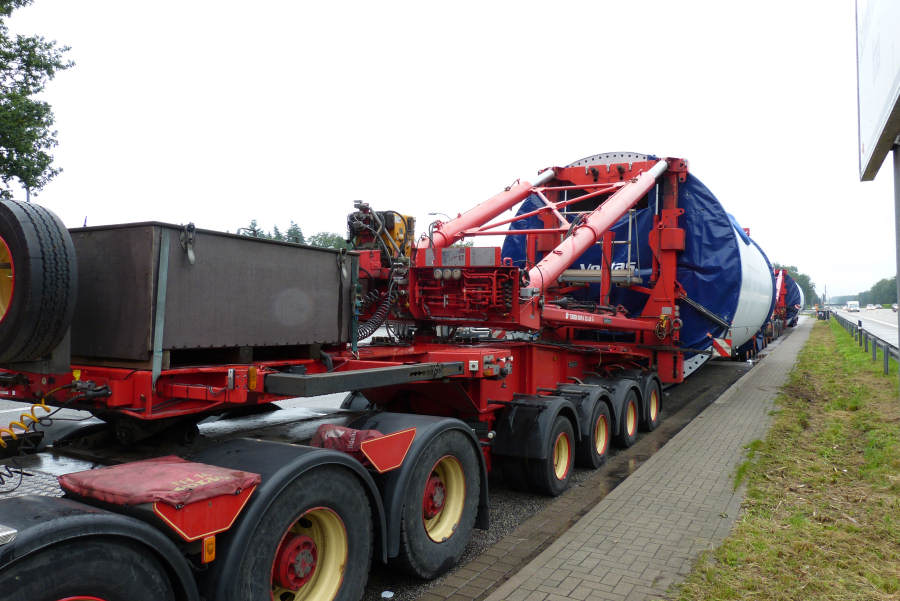 Bei den Ladungen handelte es sich um Vestas WEA Turmteile.