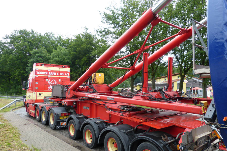 Die Zugmaschinen waren jeweils Volvo FH 16 660, 8x4, mit Goldhofer vierachs Jeepdolly und siebenachsigem Goldhofer Nachläufer.